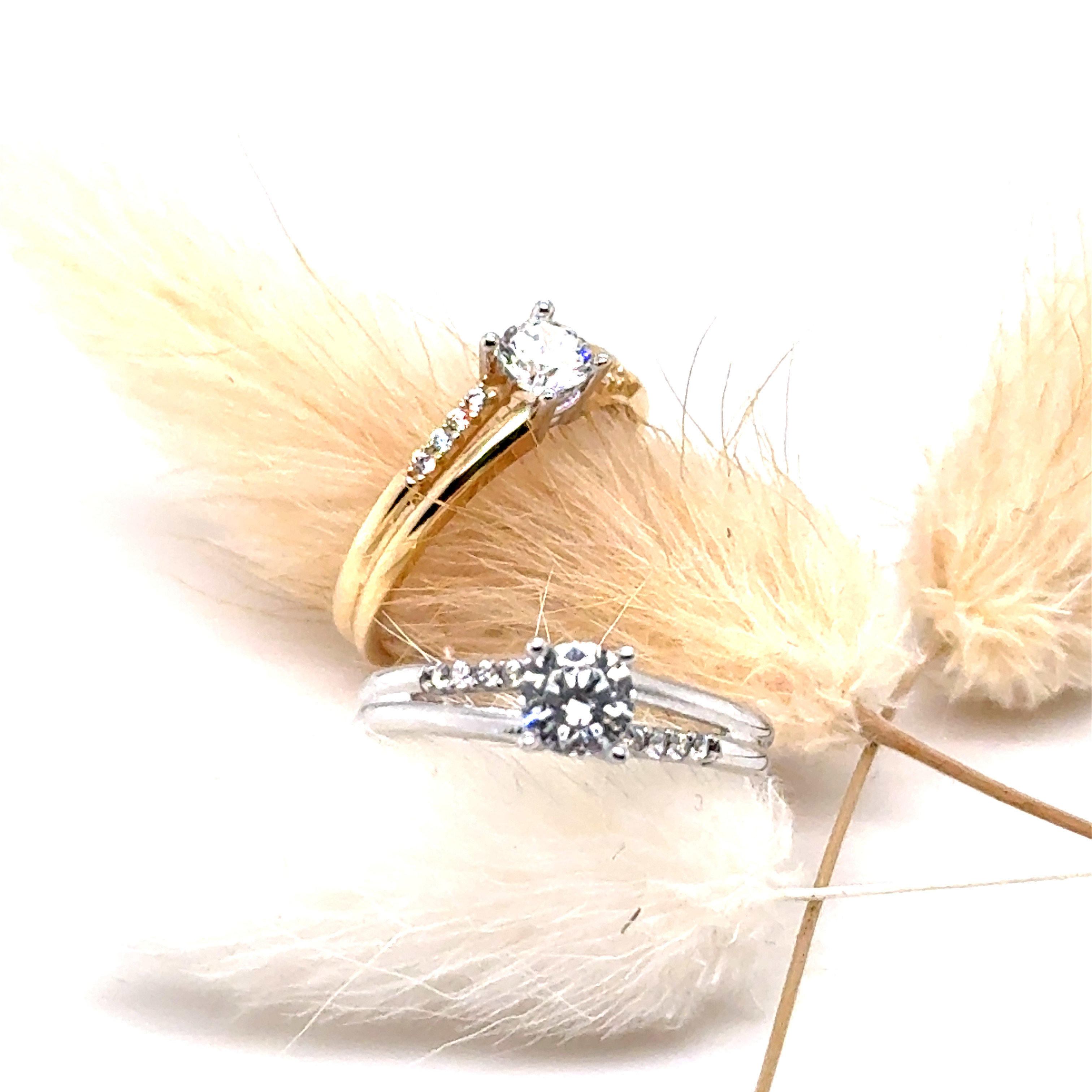 Пръстен от “Jacklin hugasian” в жълто и в бяло злато с циркони.