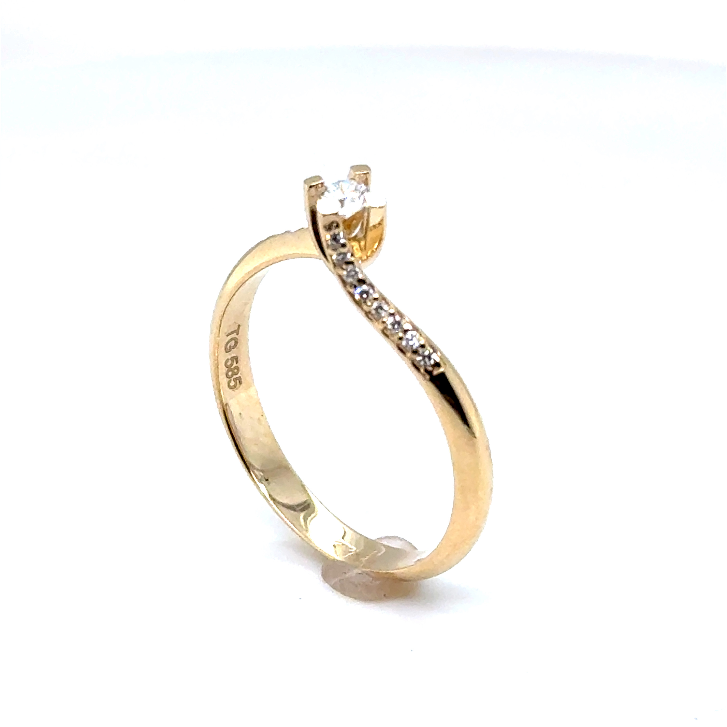 Пръстен от “Jacklin hugasian” в жълто злато с диаманти.