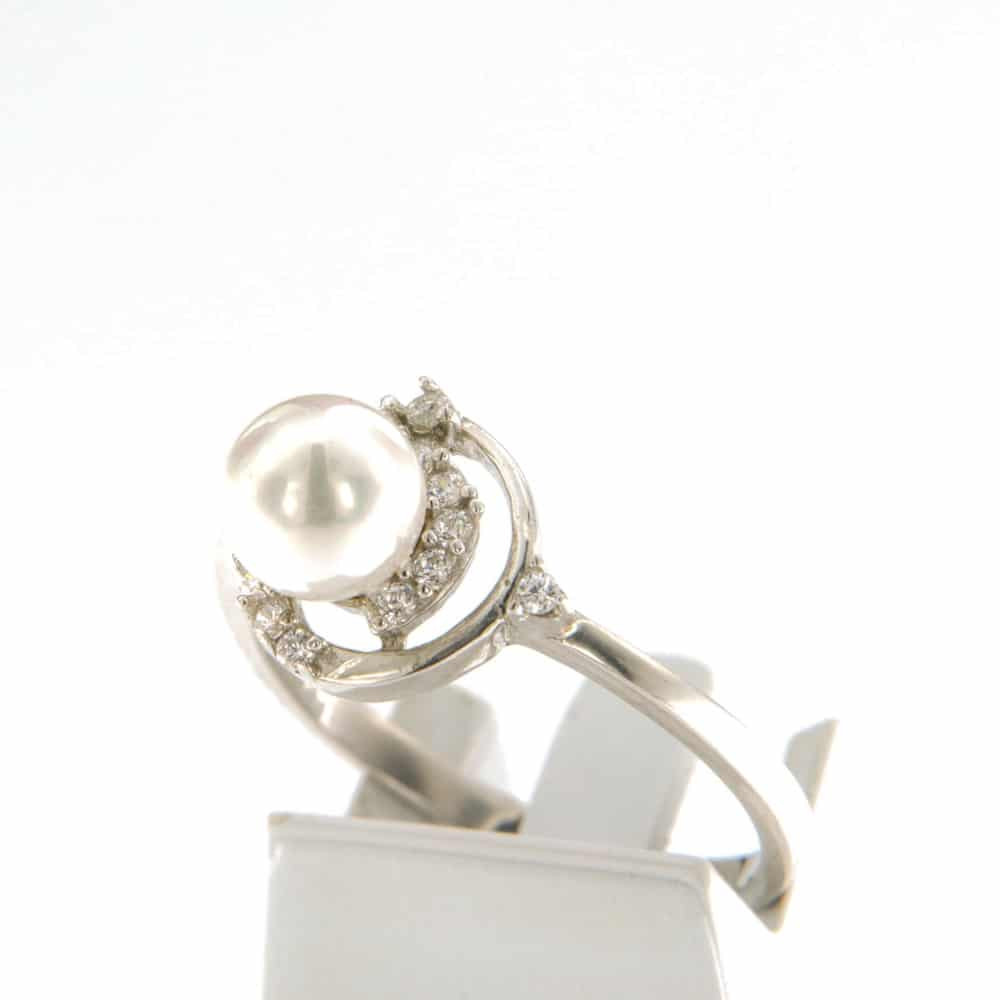 Пръстен от "Jacklin hugasian" с култивирана бяла перла и цирконии.