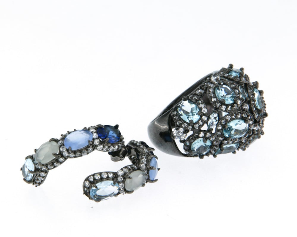 Пръстен от " Jacklin hugasian " сребро с черен родий ,циркон и топаз.