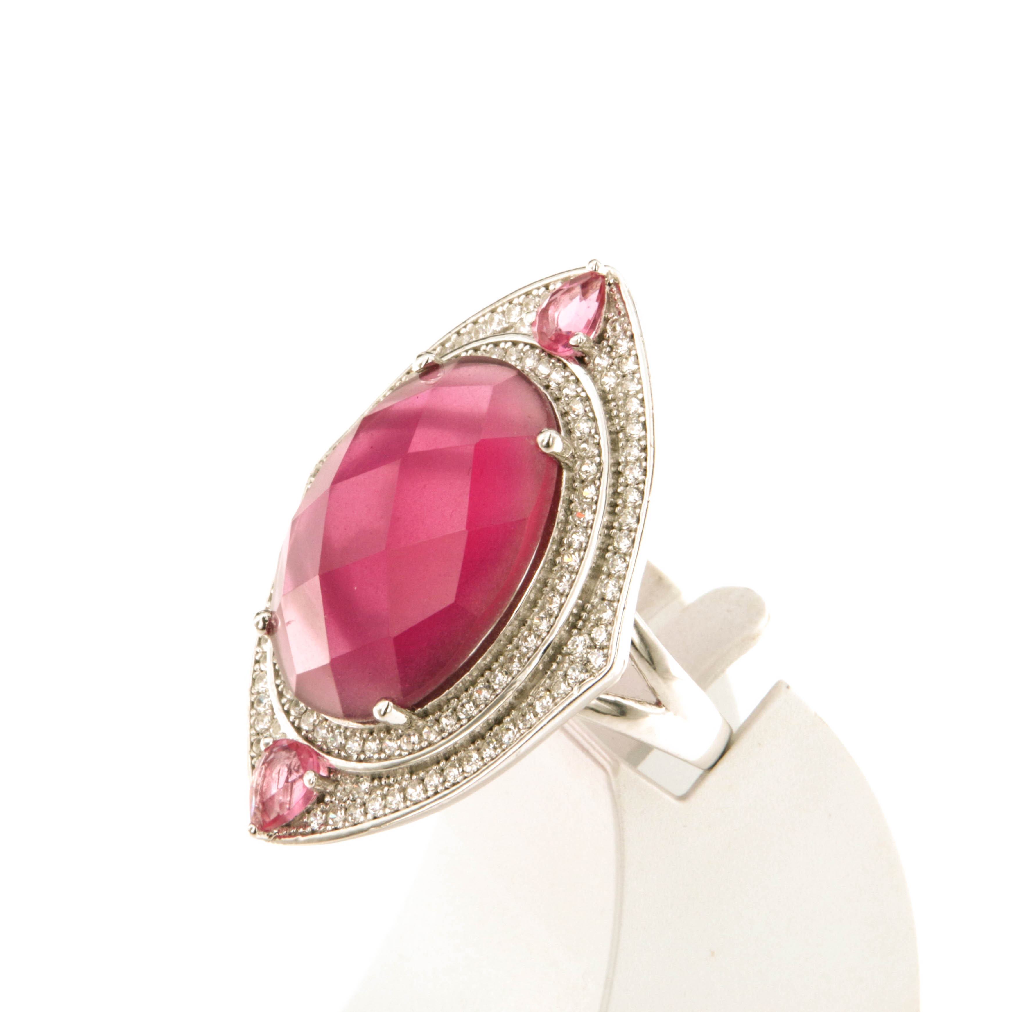 Пръстен от " Jacklin hugasian " сребро със синтетичен рубин и цирконии.