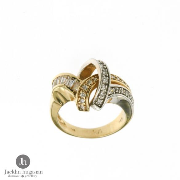 Пръстен от "Jacklin hugasian" в бяло и жълто злато с циркони
