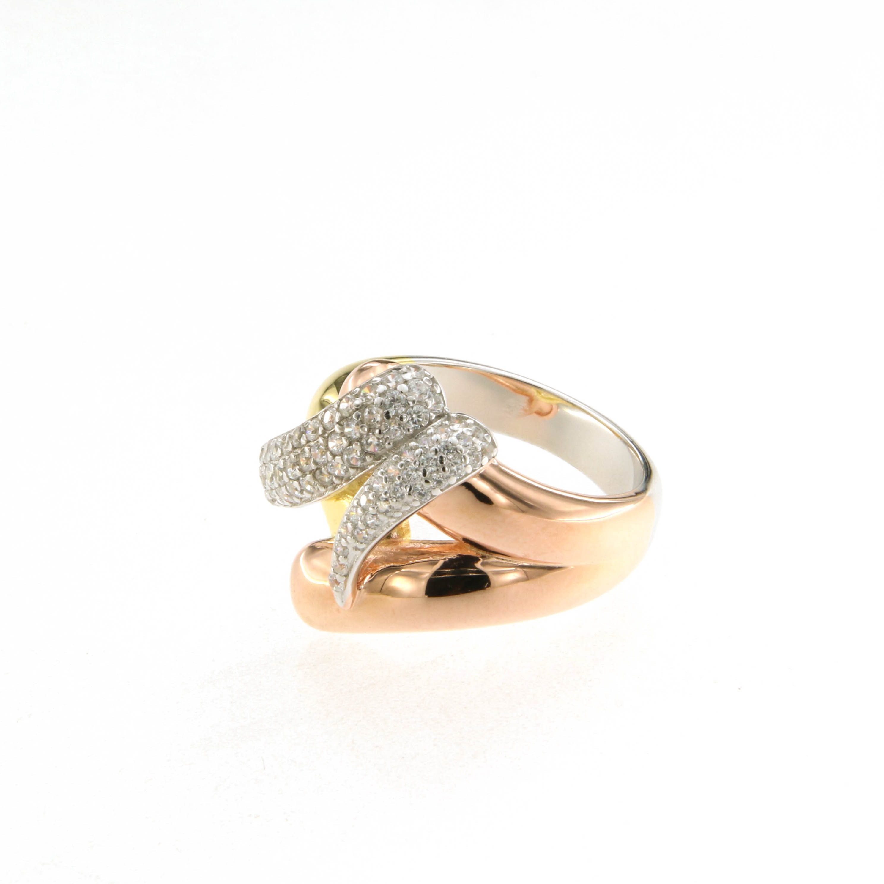 Пръстен от “Jacklin ” в розово и бяло сребро с жълта позлата и цирконии