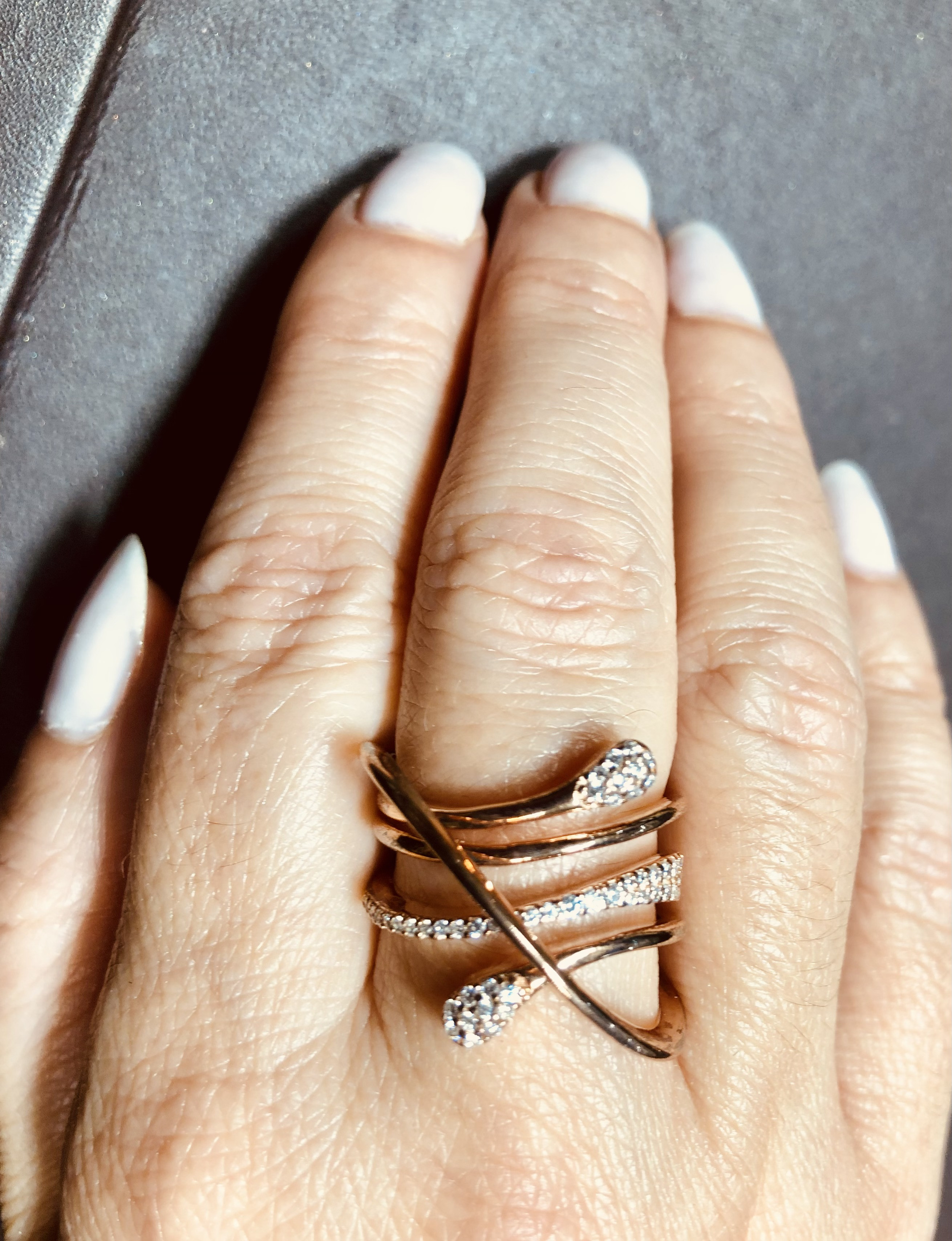 Пръстен от “Jacklin hugasian” в розово сребро с циркони.