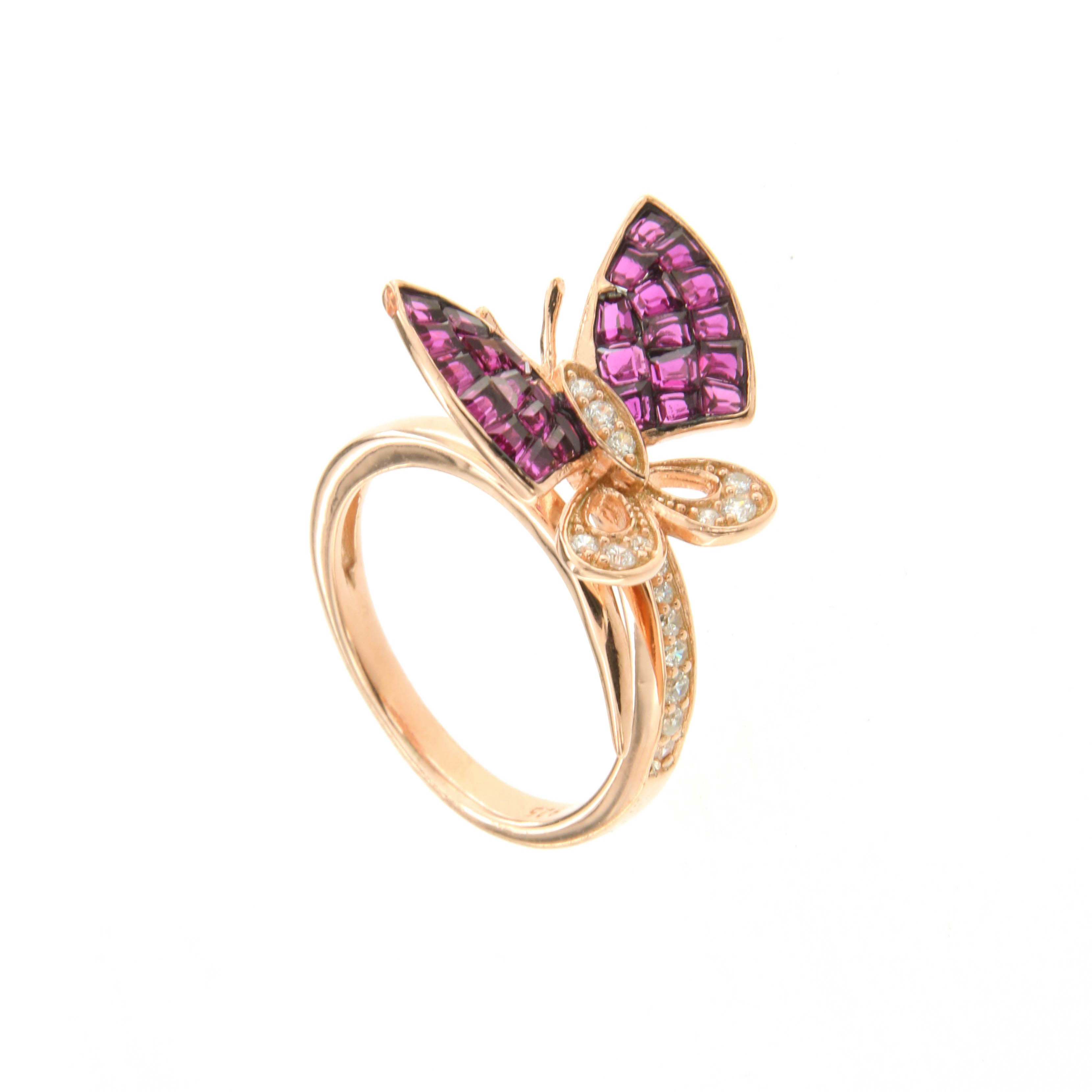 Пръстен от “Jacklin hugasian” в розово сребро с цирконии и розов турмалин.