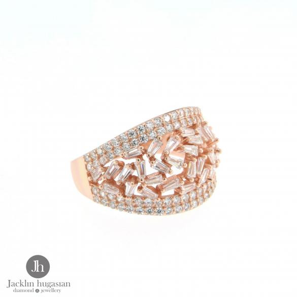 Пръстен от "Jacklin hugasian" в розово сребро с цирконии. Проба : 925 Размер : N53