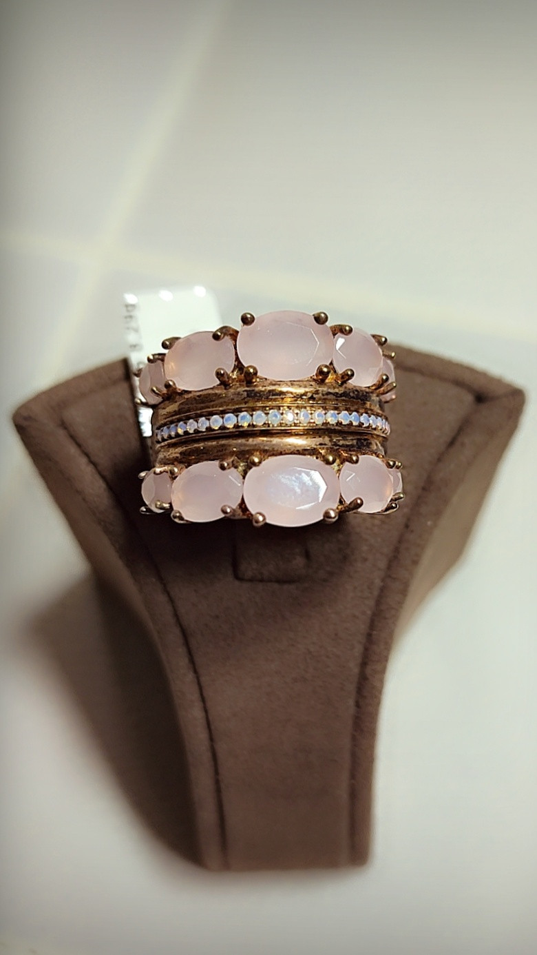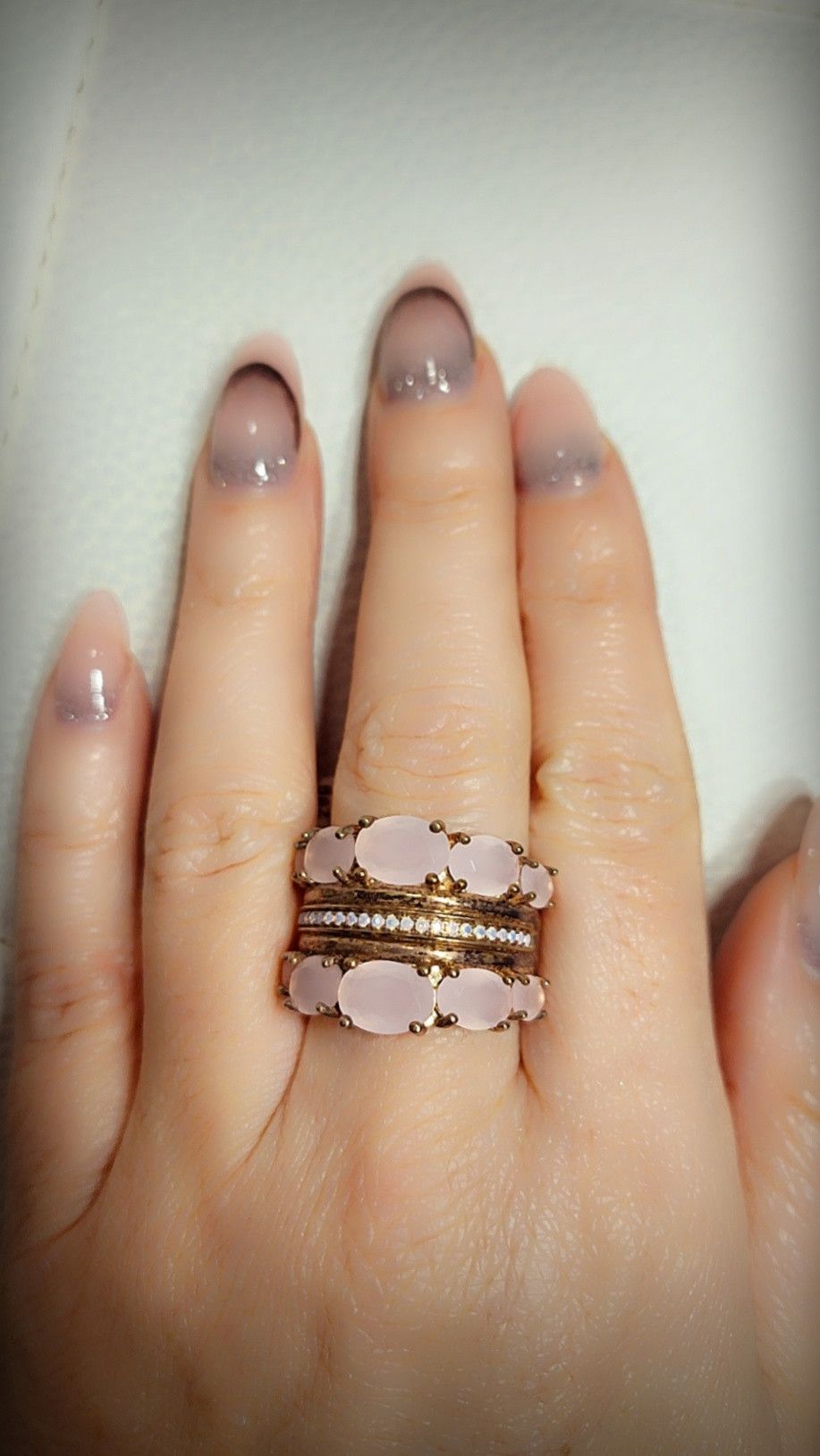 Пръстен от ”Jacklin hugasian” в розово сребро с опал и розов кварц.
