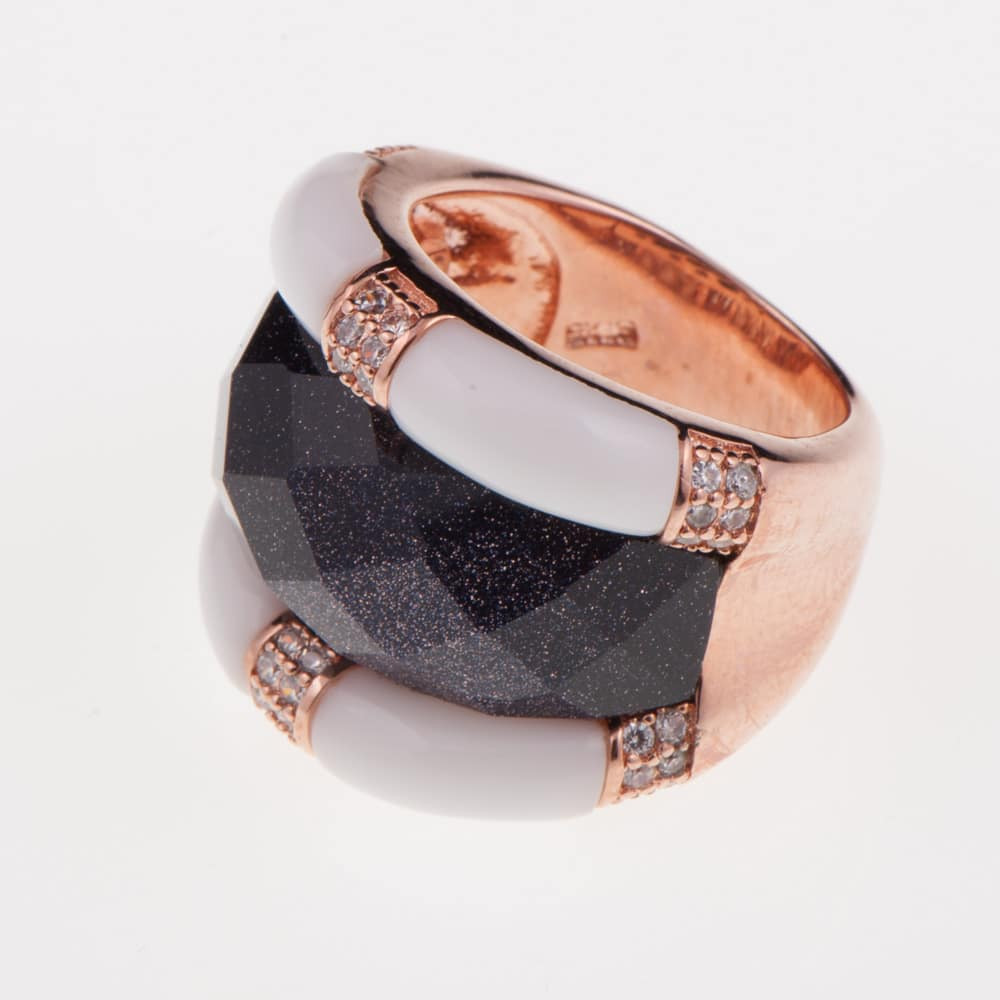 Пръстен от "Jacklin hugasian" в розово сребро с лилав авантюрин, бял ахат и цирконии.