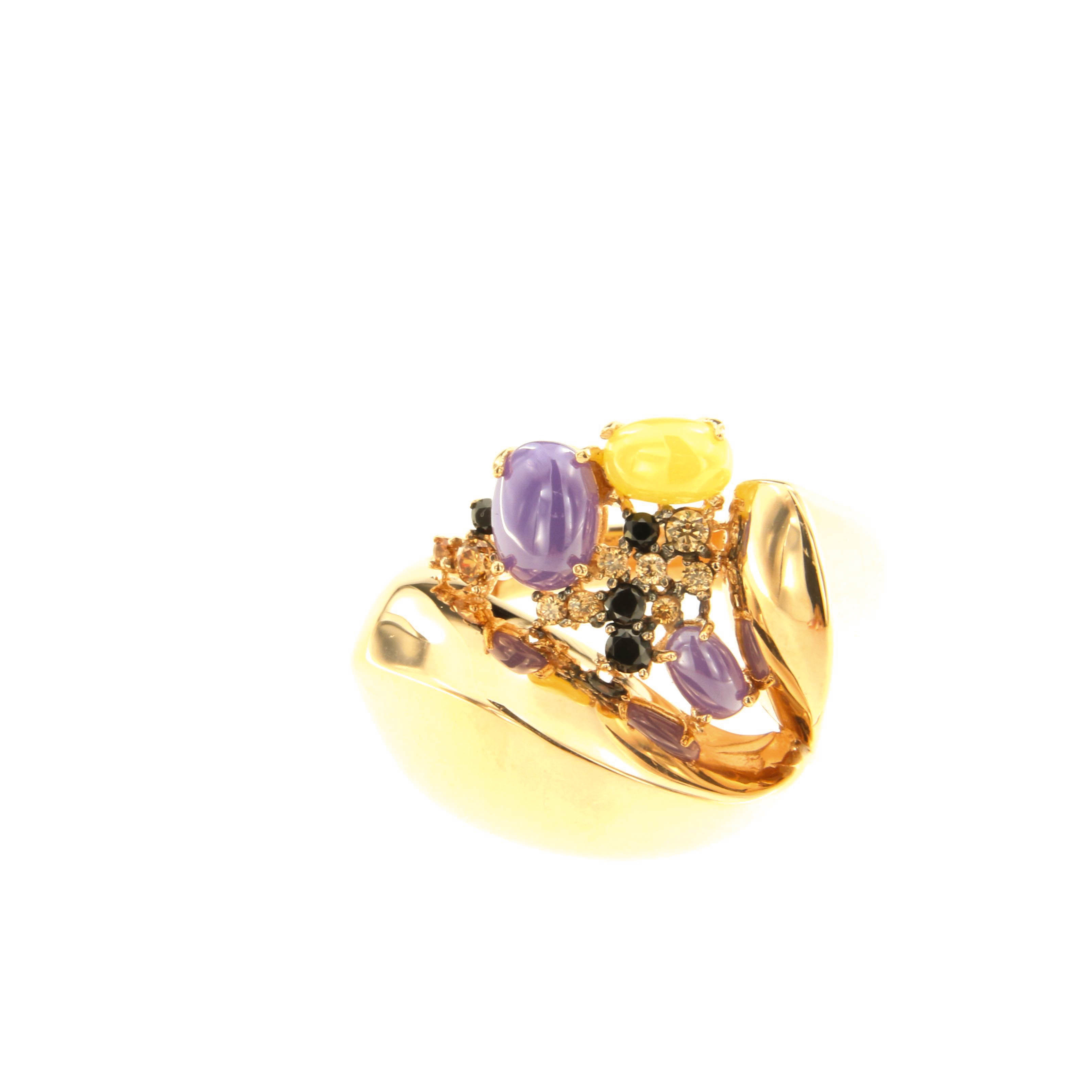 Пръстен от “Jacklin hugasian” в розово злато с лунен камък, гранат и златист топаз.