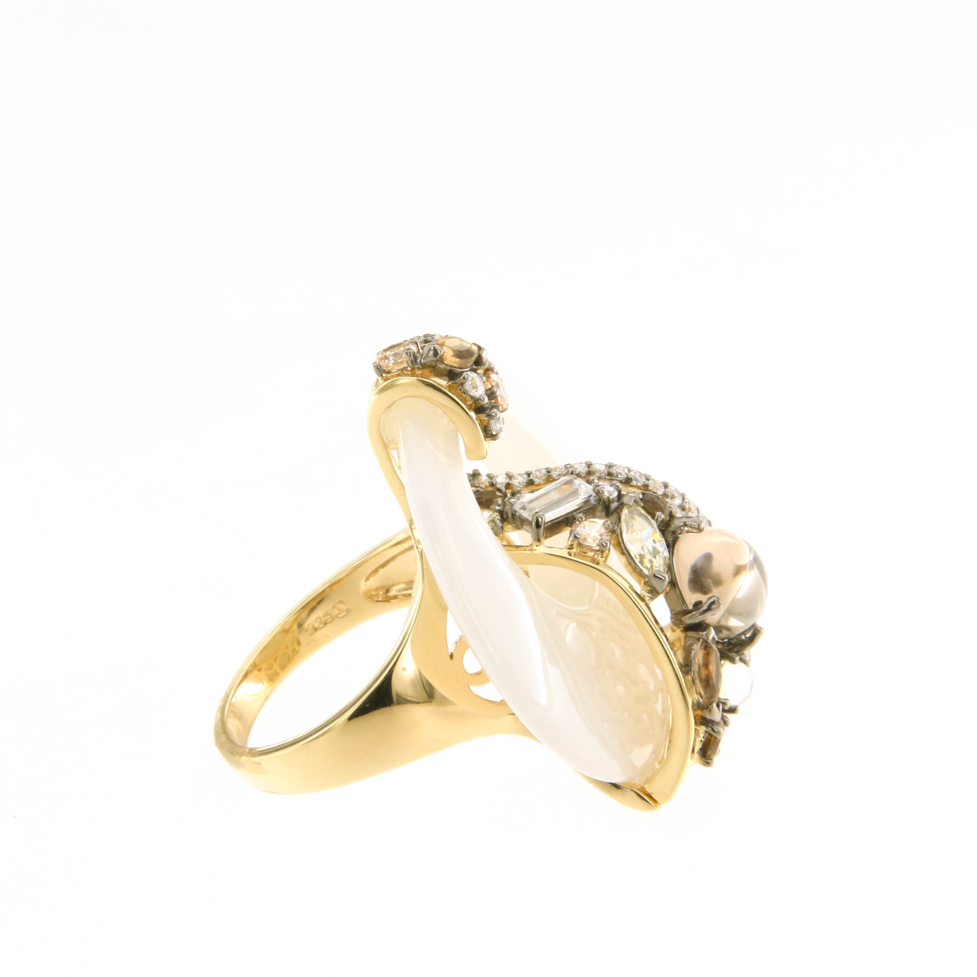Пръстен от “Jacklin hugasian” в сребро с позлата, лунен камък, опушен топаз, цирконии, цитрин.