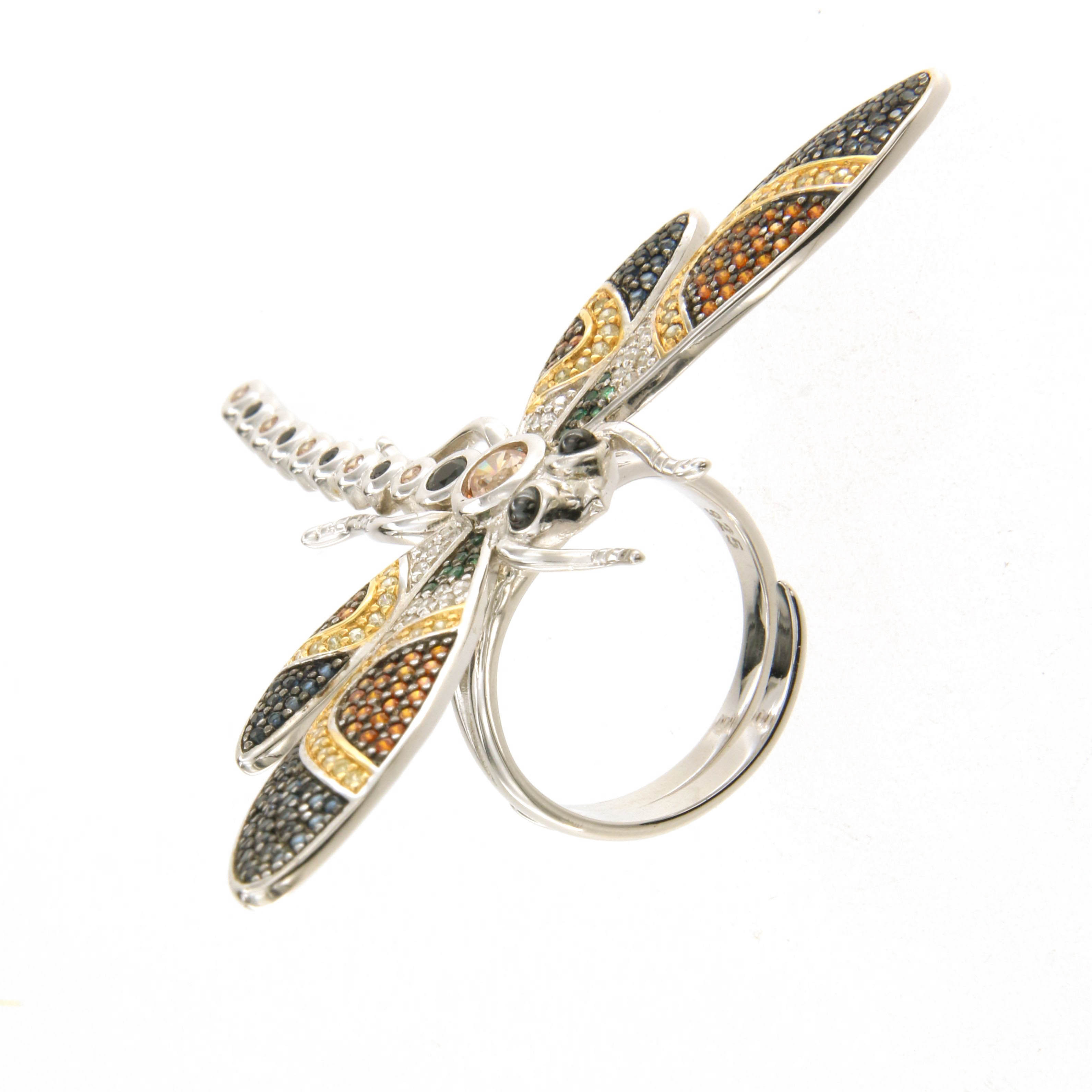 Пръстен от “Jacklin hugasian” в сребро с изумруд, цитрин, син и златист топаз, оникс и циркони.