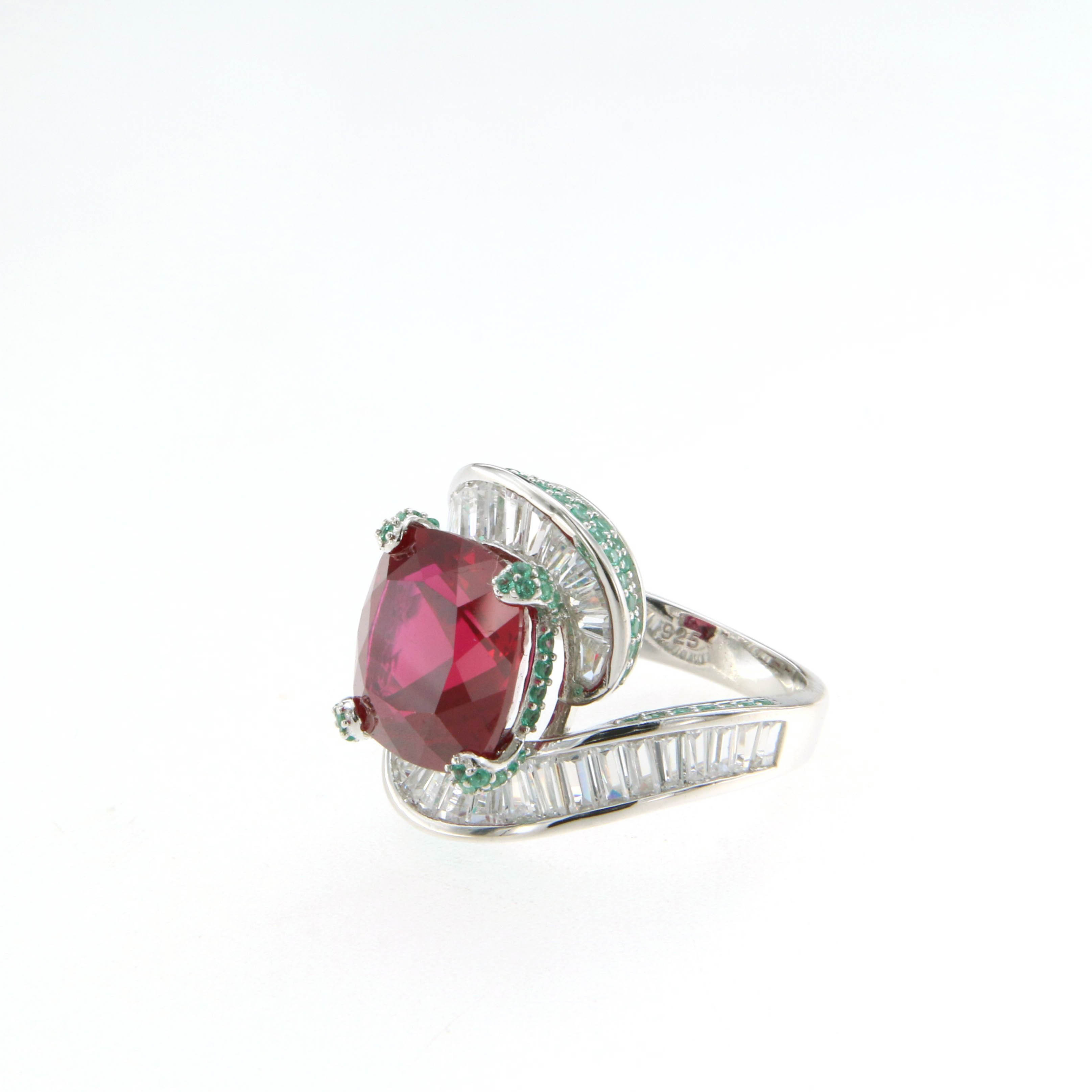 Пръстен от “Jacklin hugasian” в сребро гланц с цирконии,рубин и изумруд