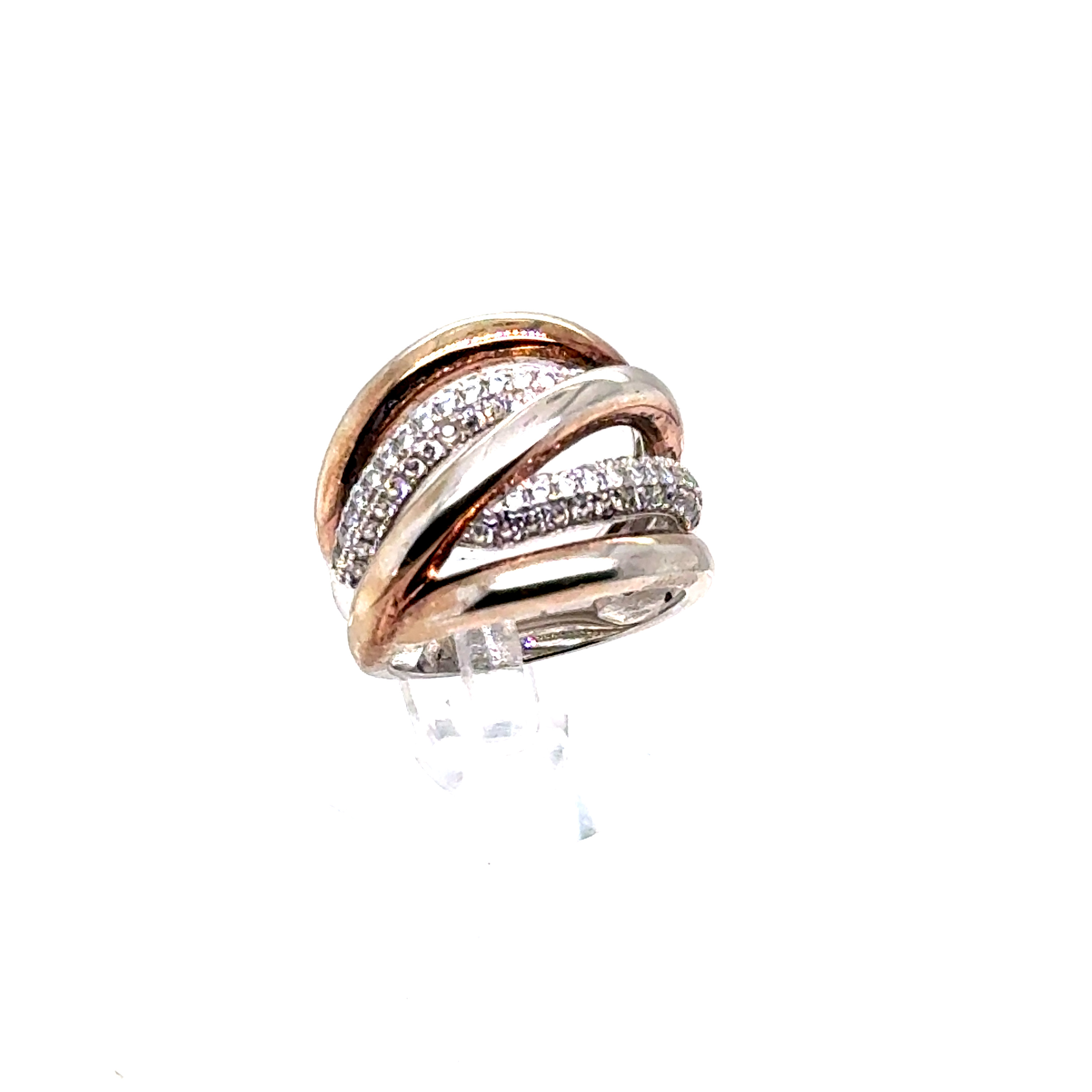 Пръстен от “Jacklin hugasian” в сребро и розово сребро с циркони.