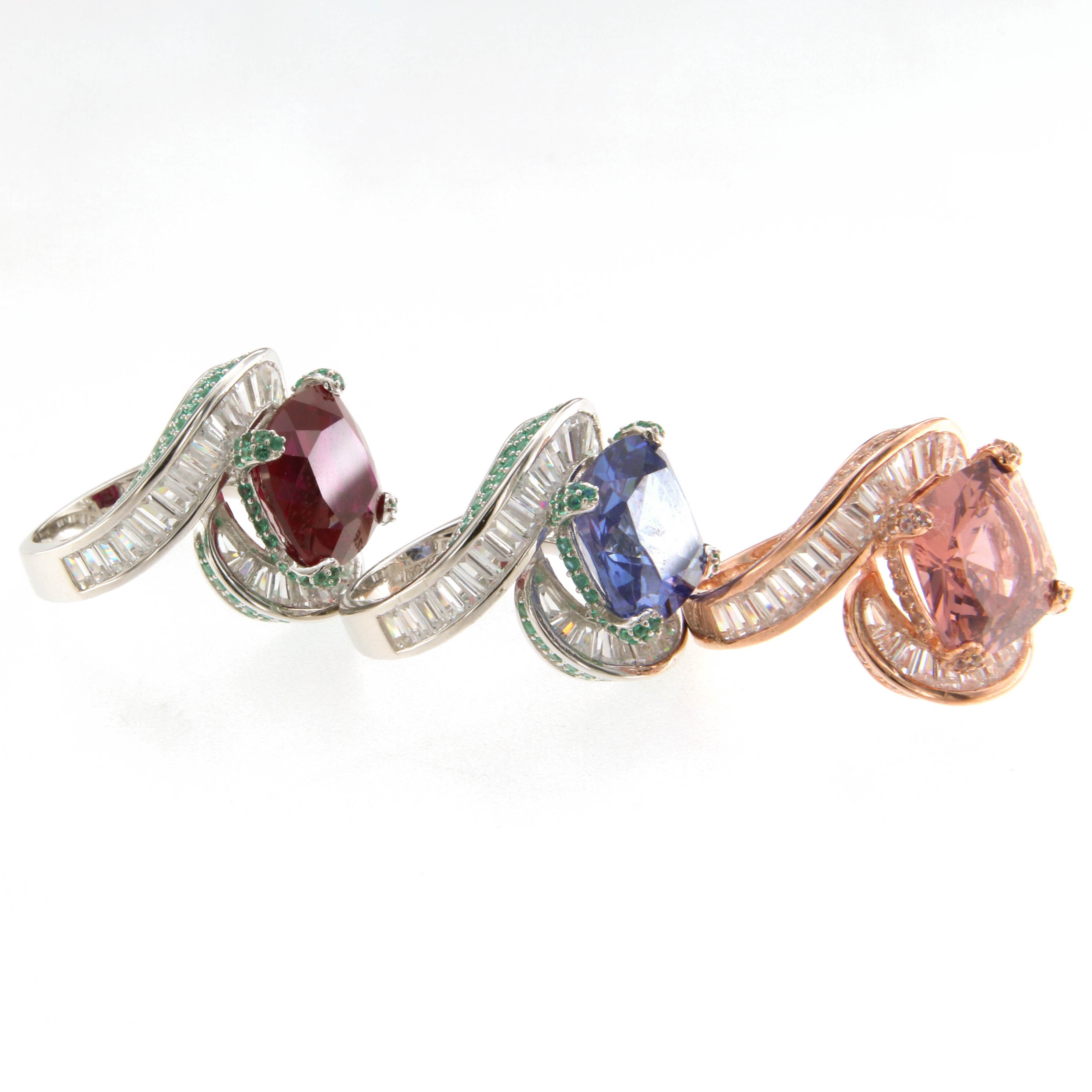 Пръстен от “Jacklin hugasian” в сребро,с аметист, циркони и изумруди.