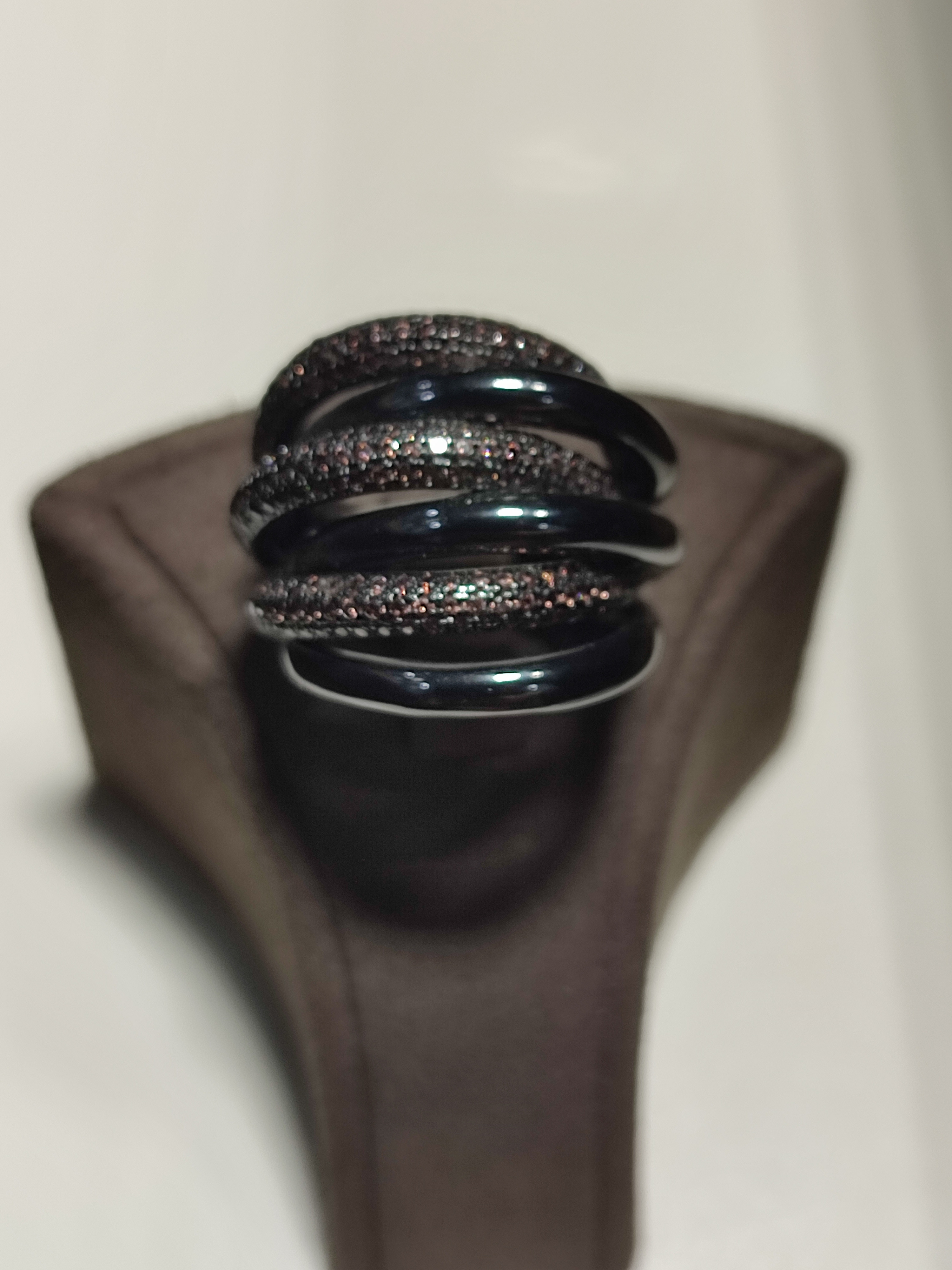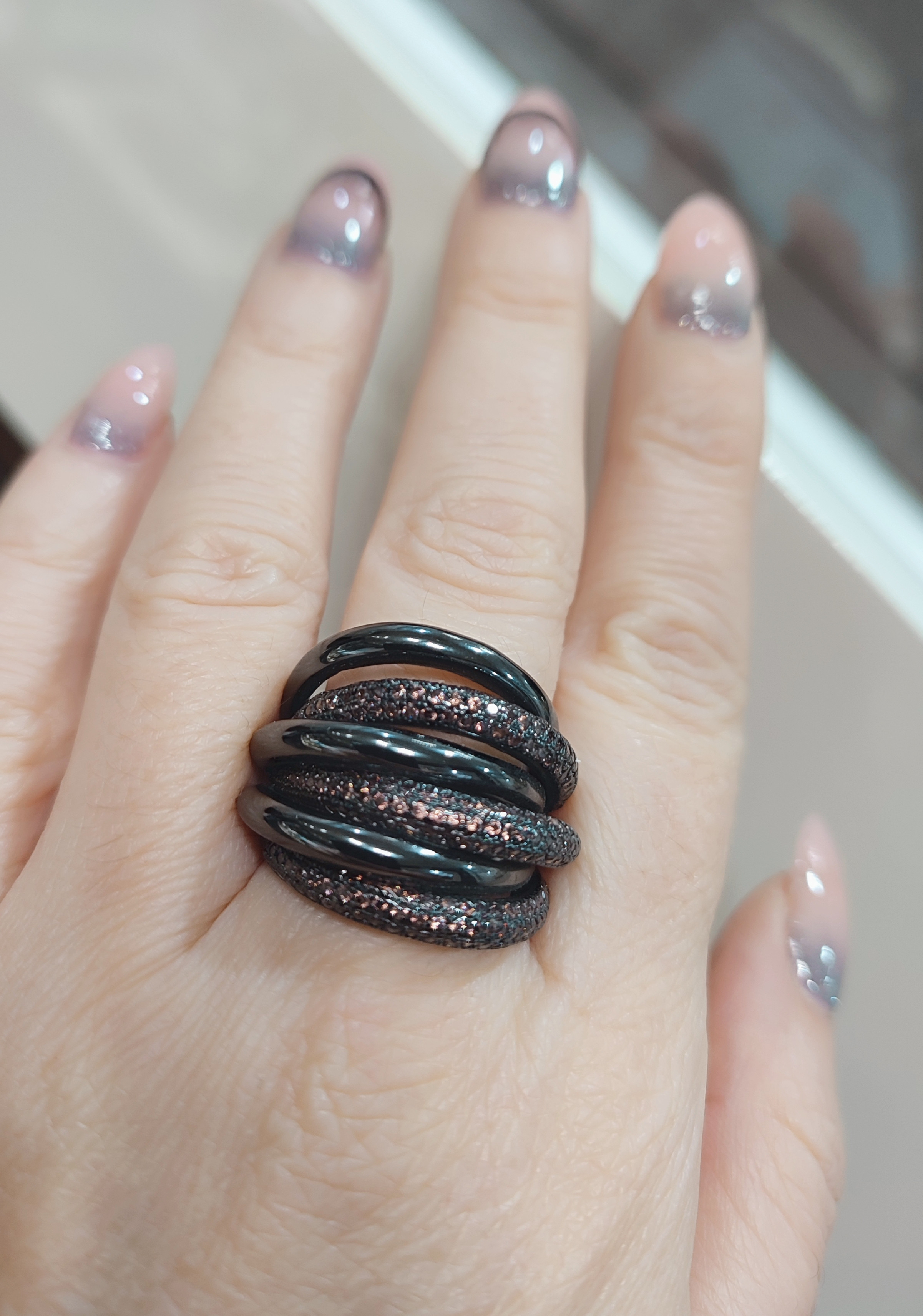 Пръстен от "Jacklin hugasian" в сребро с черен родий и опушен топаз.