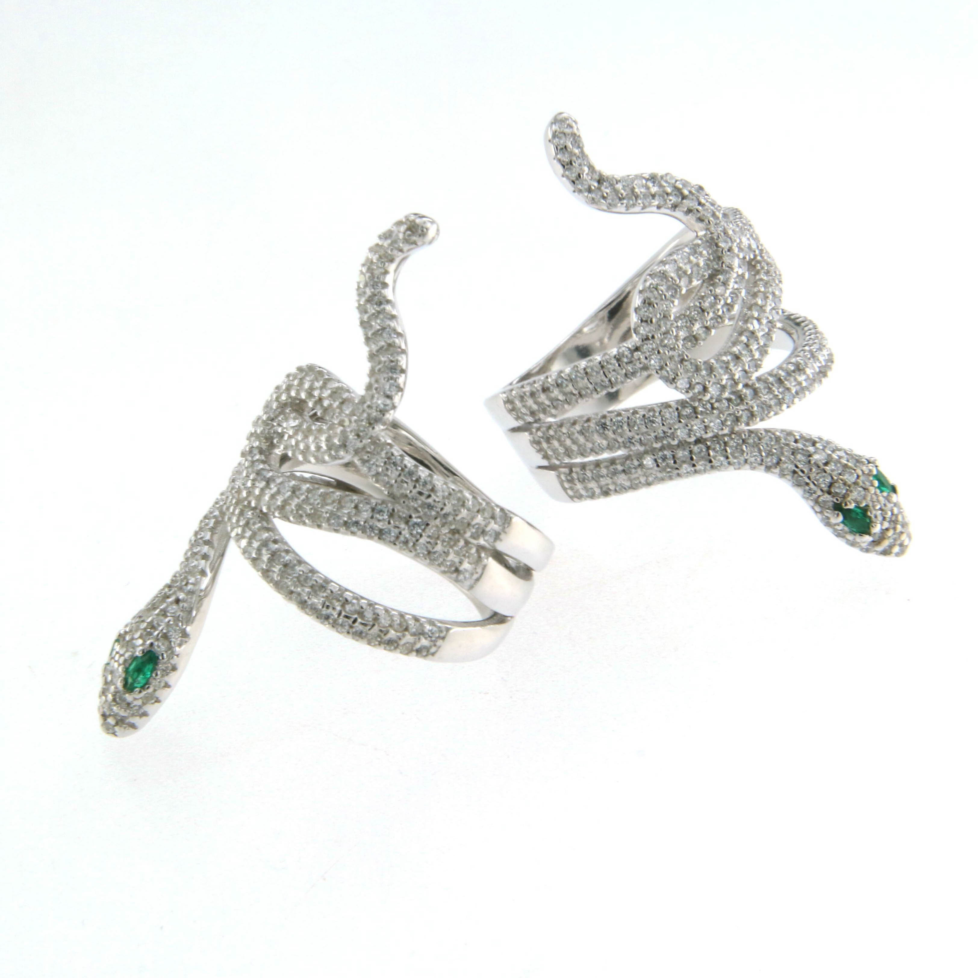 Пръстен от “Jacklin hugasian” в сребро с циркони и изумруди.