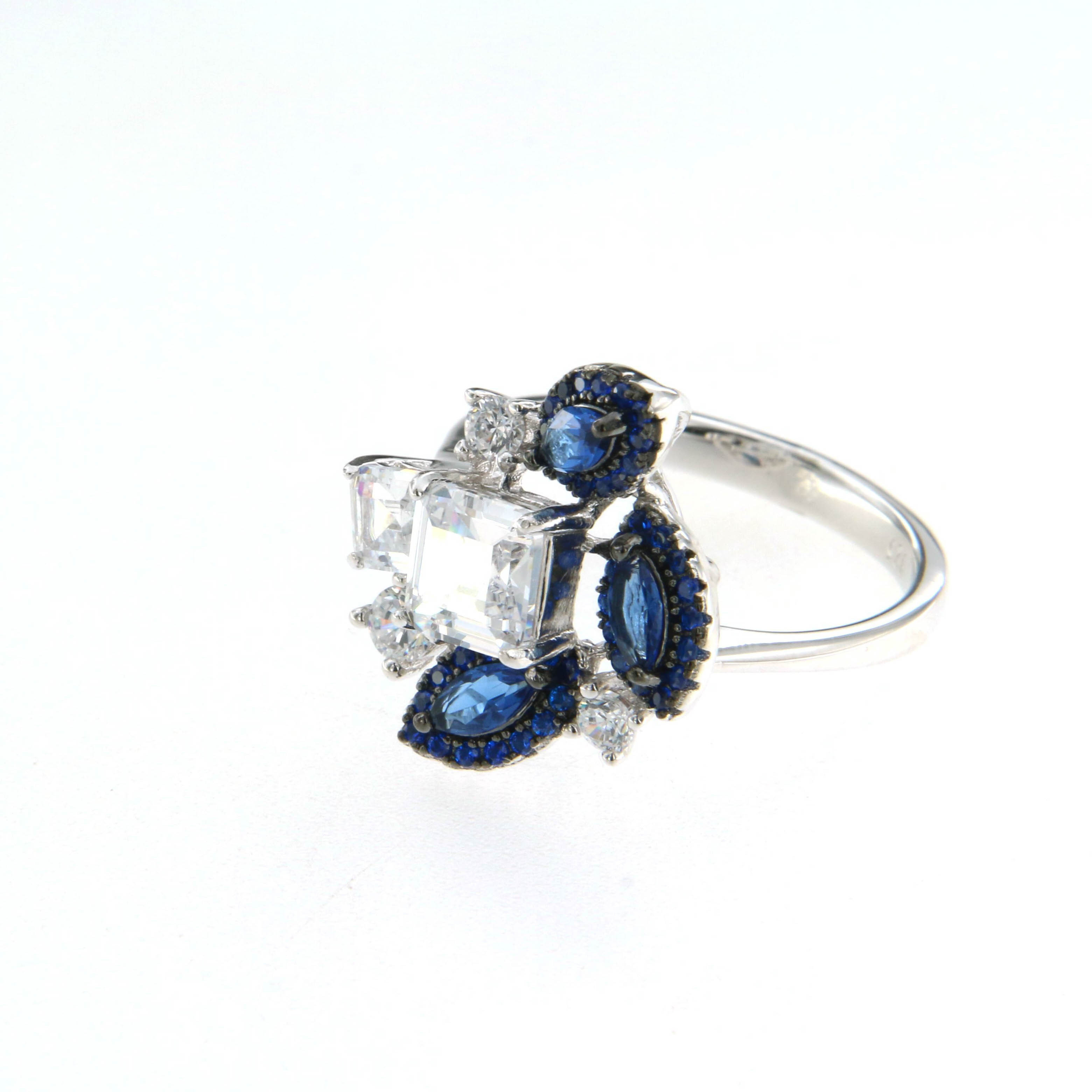 Пръстен от “Jacklin hugasian” в сребро с цирконии и тъмно син сапфир.
