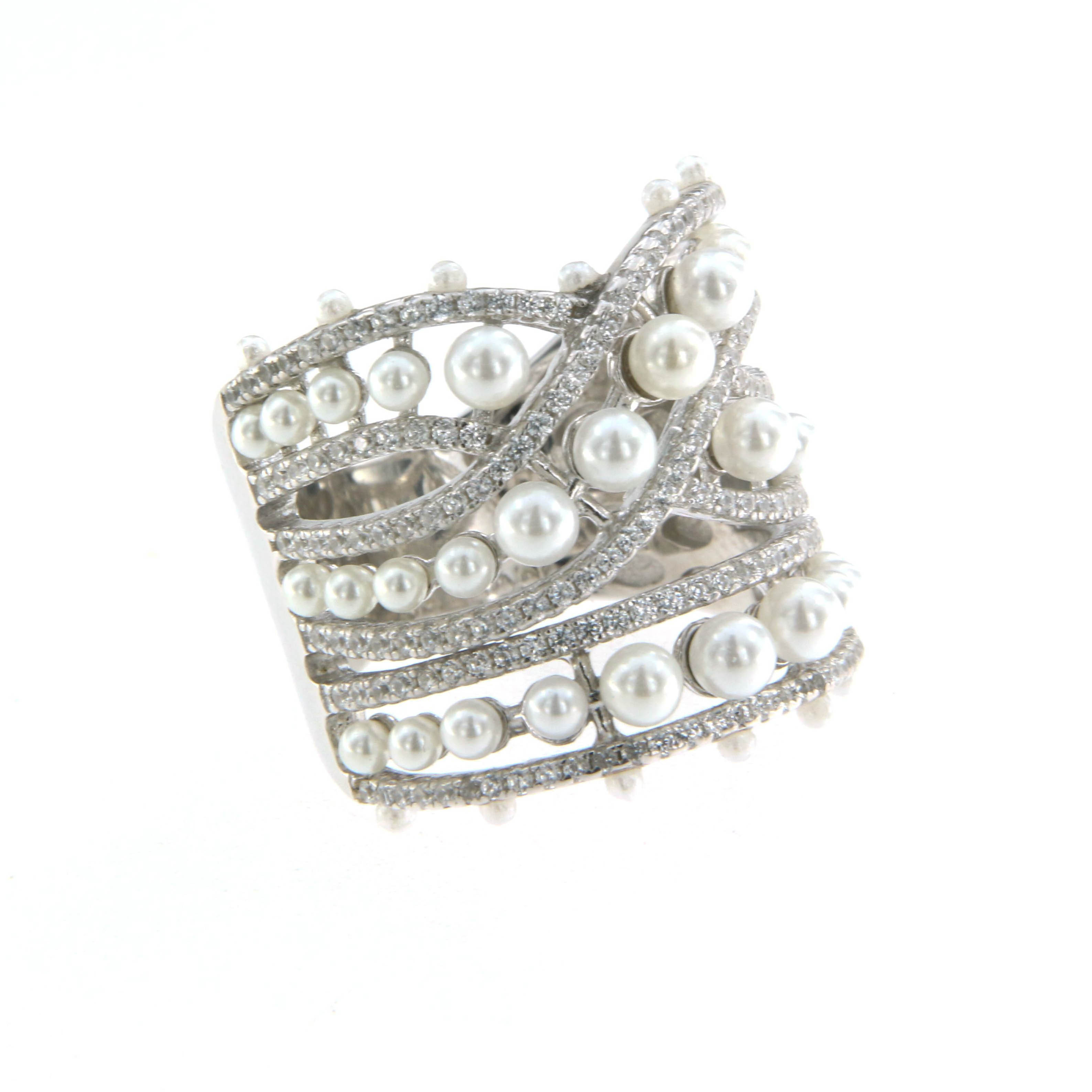 Пръстен от "Jacklin " в сребро с цирконии и бели речни перли