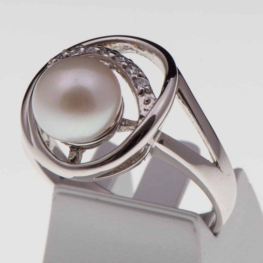 Пръстен от "Jacklin hugasian" в сребро с цирконии и култивирана перла.