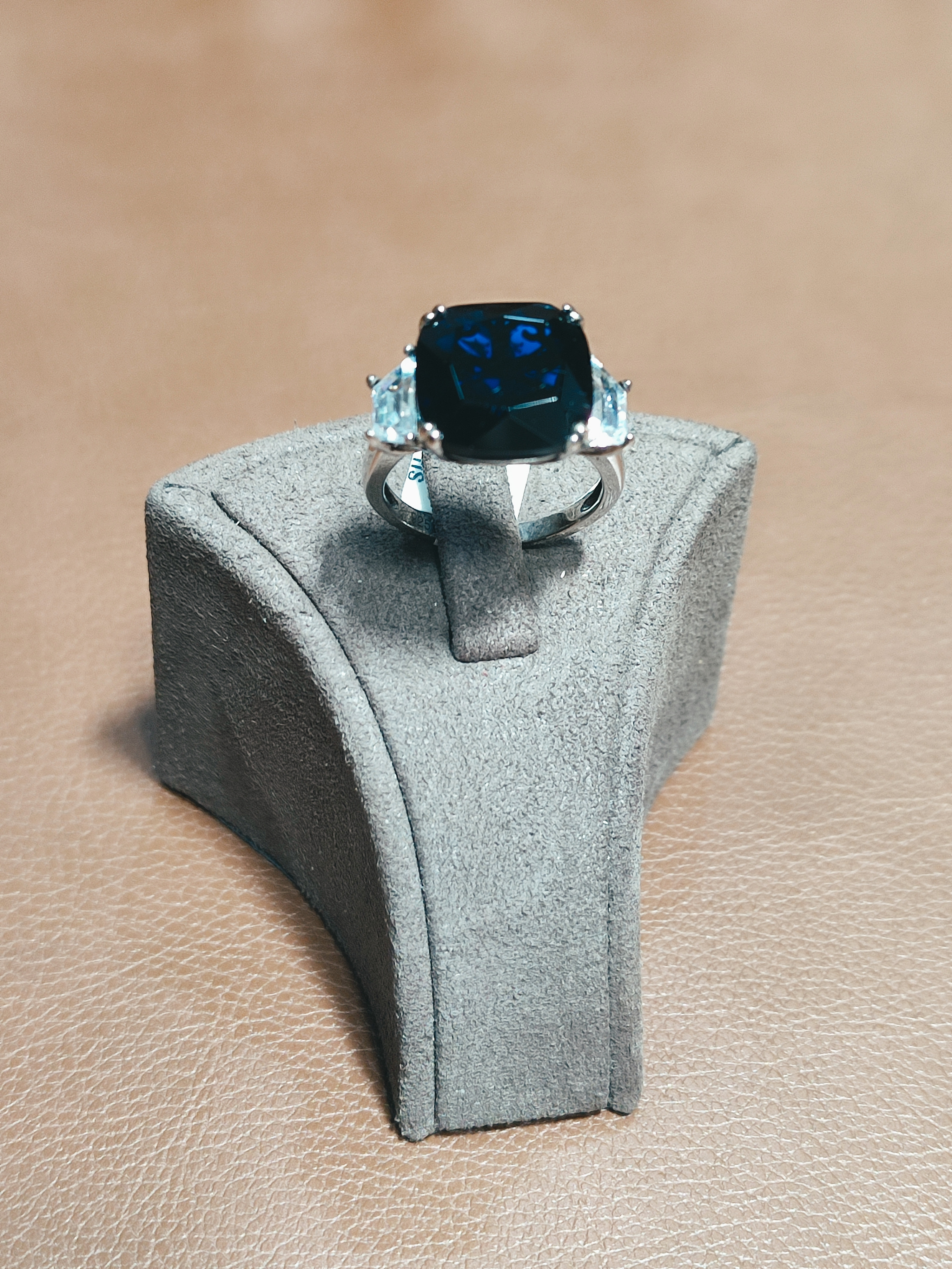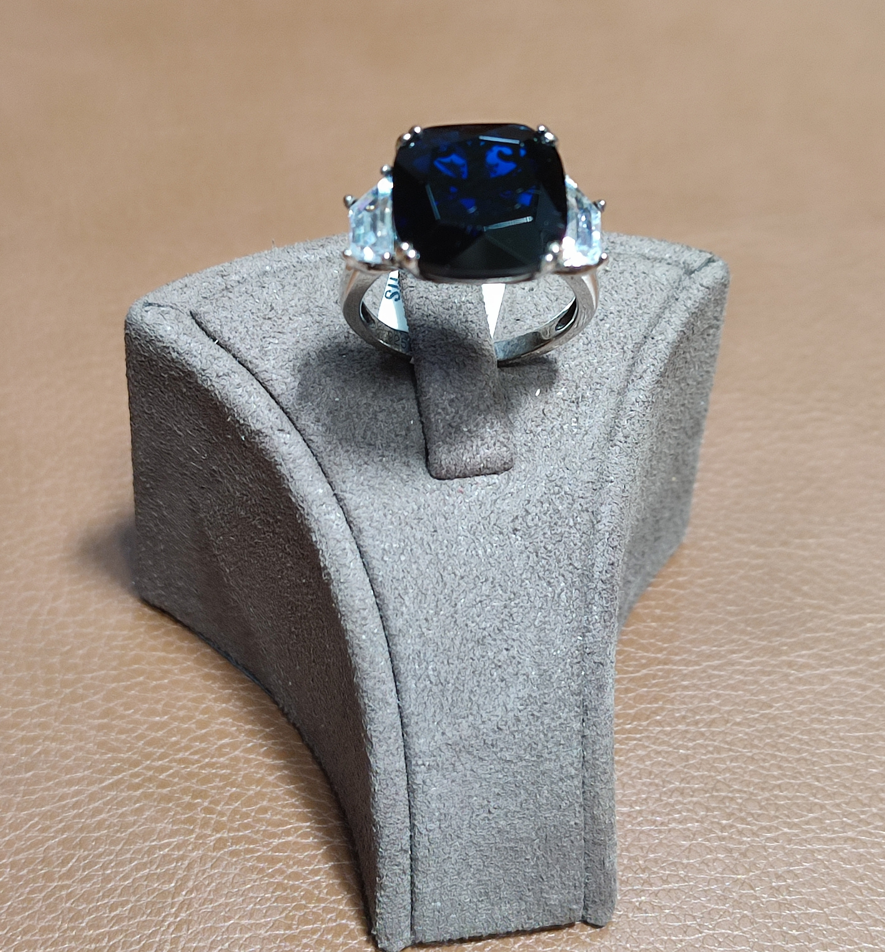 Пръстен от "Jacklin hugasian" в сребро с цирконии и тъмно син сапфир.