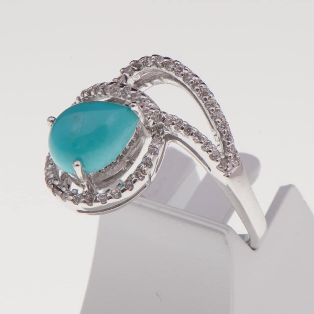 Пръстен от "Jacklin hugasian" в сребро с тюркоаз и цирконии.