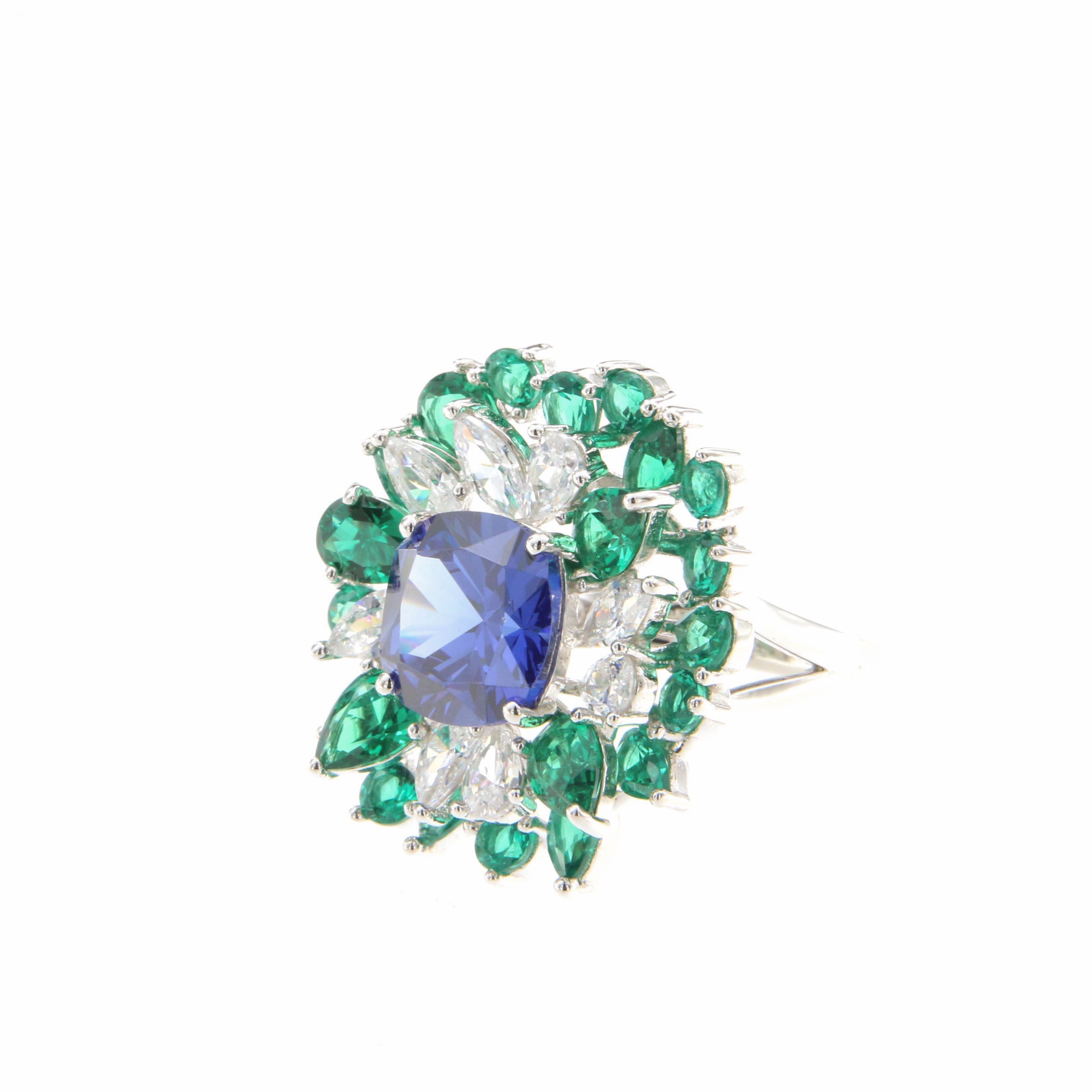 Пръстен от “Jacklin ” в сребро,със сапфир и изумруди