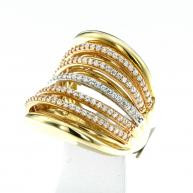 Пръстен  от "Jacklin hugasian"  в жълто, бяло и розово злато с циркони.