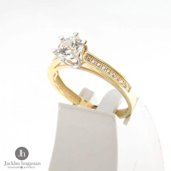 Пръстен от " Jacklin hugasian " в жълто и бяло злато с цирконии.