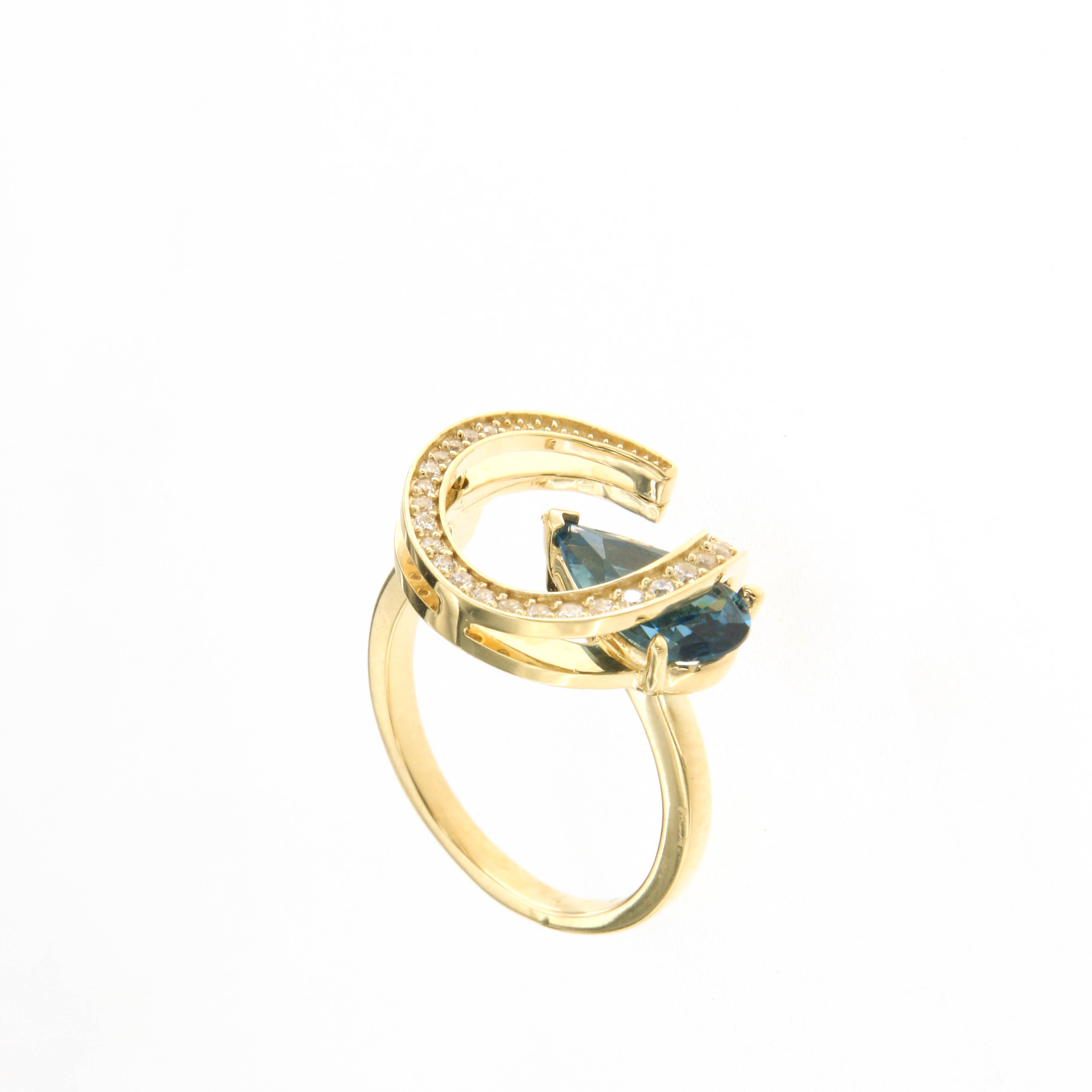 Пръстен от ” Jacklin hugasian ” в жълто злато  с лондон топаз и циркони. Колекция ”ROBERTO BRAVO “. Произход Италия