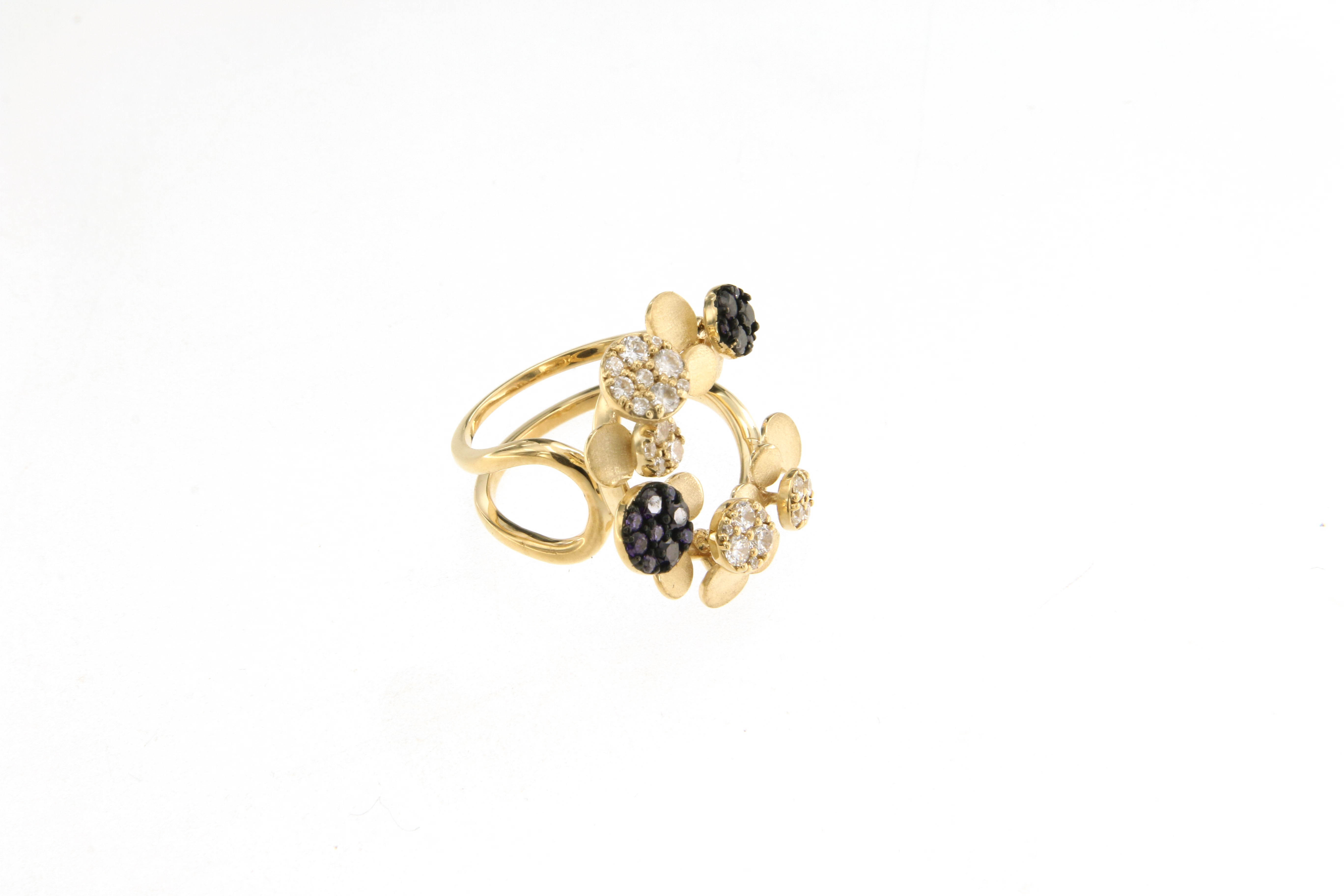 Пръстен от ” Jacklin hugasian ” в жълто злато с аметисти и циркони.