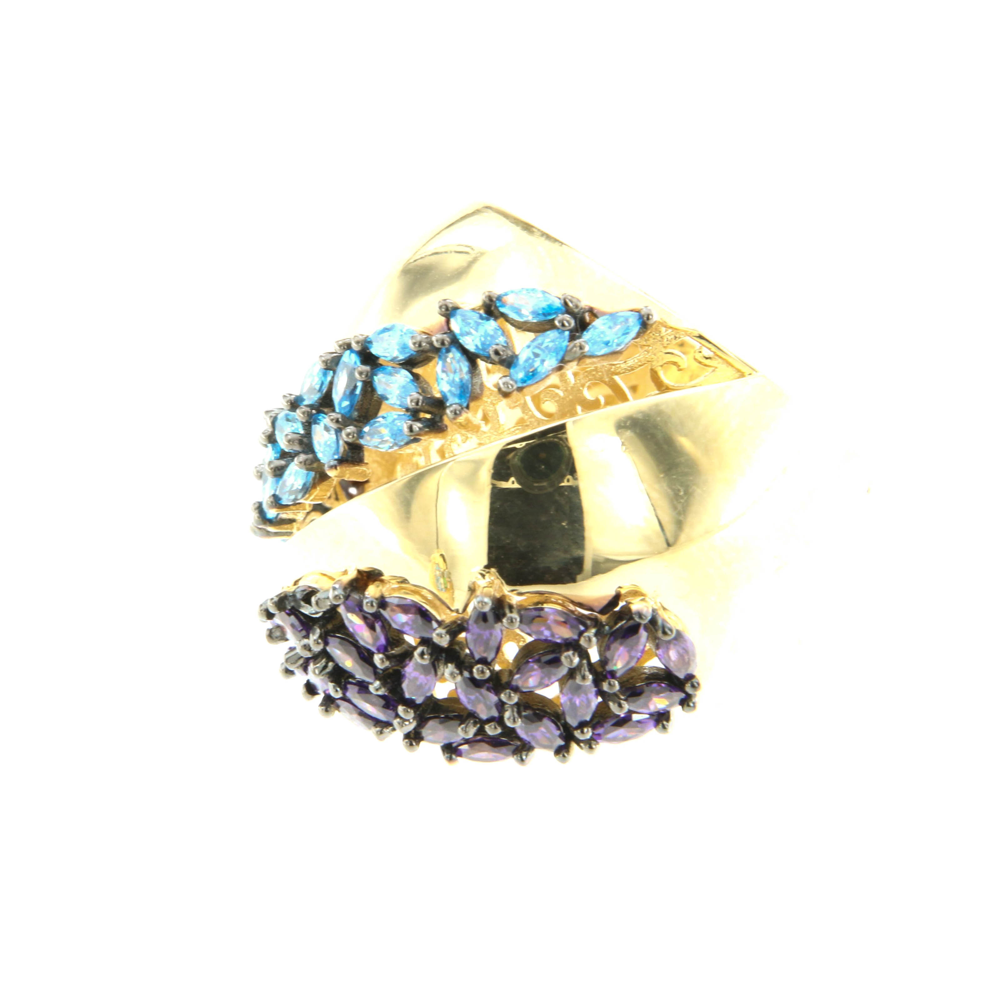Пръстен от “Jacklin hugasian” в жълто злато гланц с лилав аметист и син топаз.