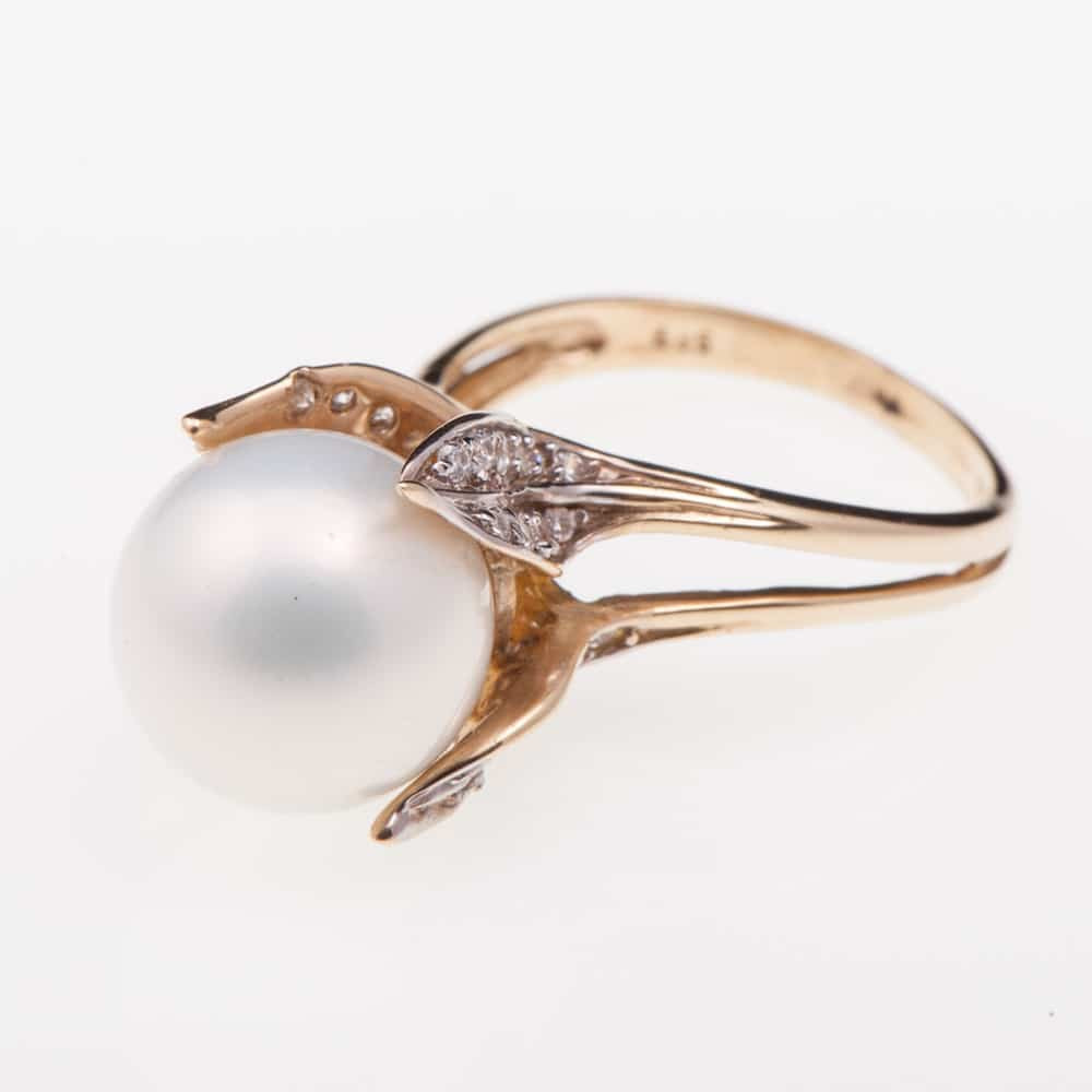 Пръстен от "Jacklin hugasian" в жълто злато с циркони и перла.