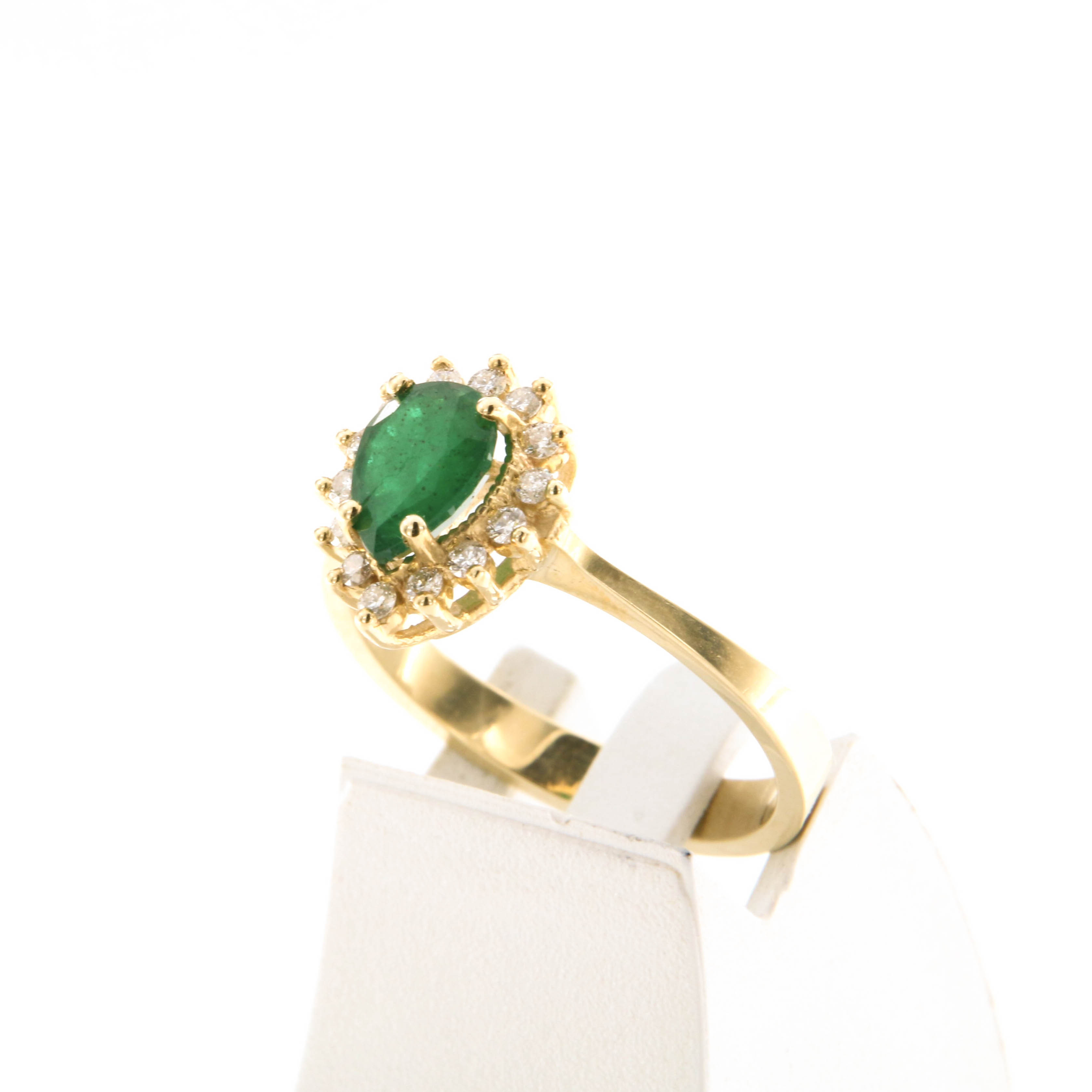 Пръстен от ” Jacklin hugasian ” в жълто злато с диаманти и естествен изумруд.