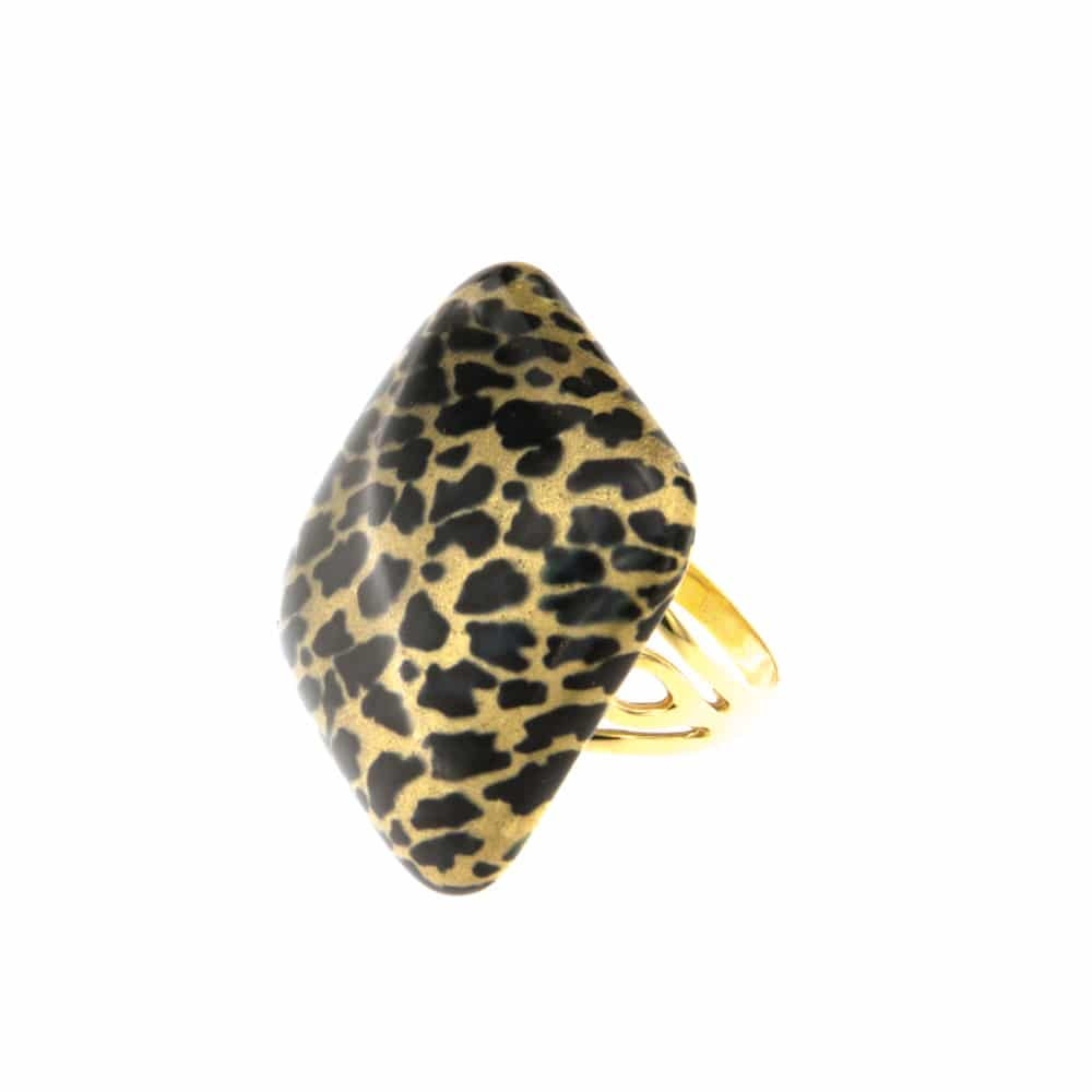 Пръстен от "Jacklin hugasian" в жълто злато с тигров емайл.