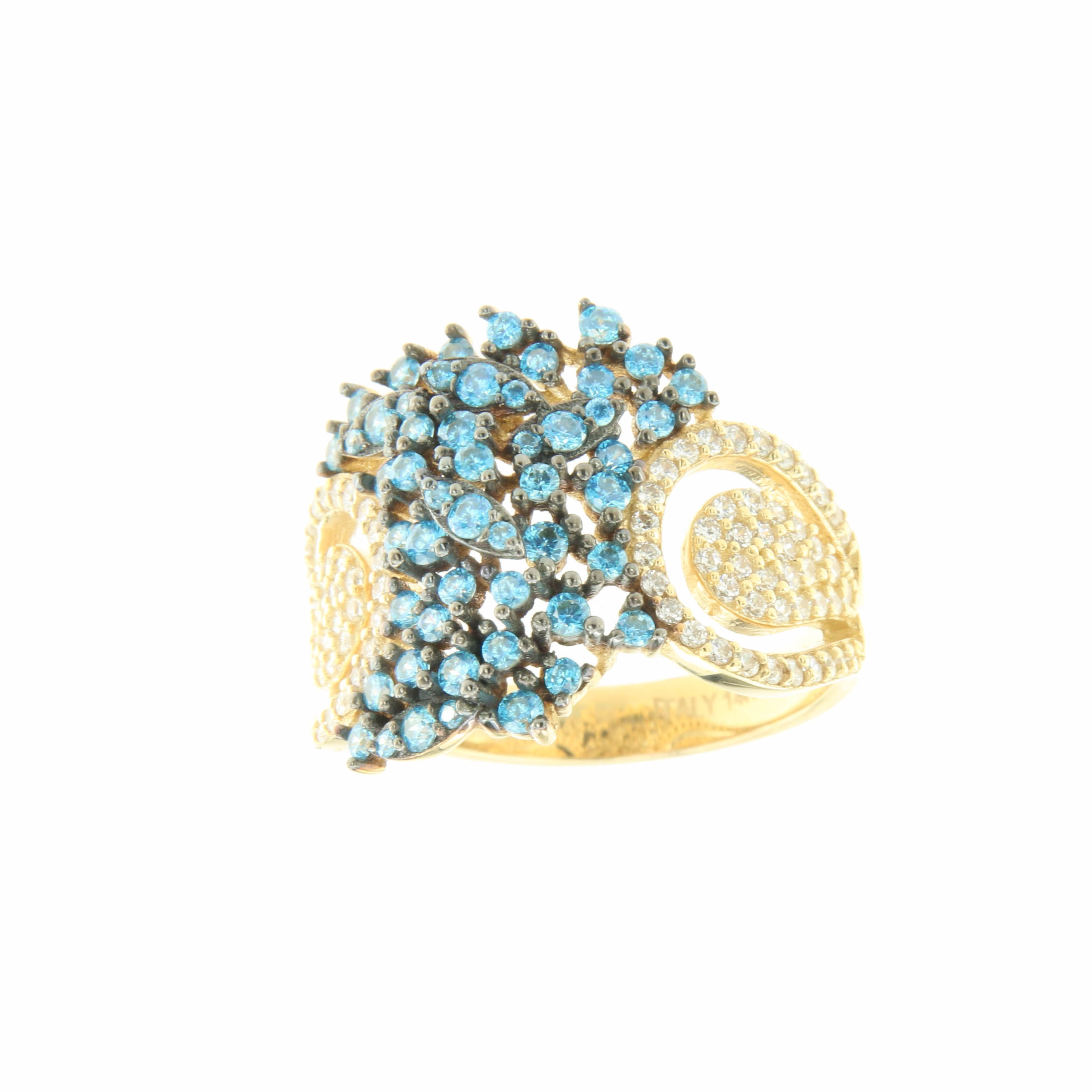 Пръстен от “Jacklin hugasian” в жълто злато със син топаз и цирконии.