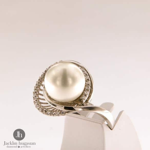 Пръстен от "Jacklin hugasian" с цирконии и култивирана бяла перла.