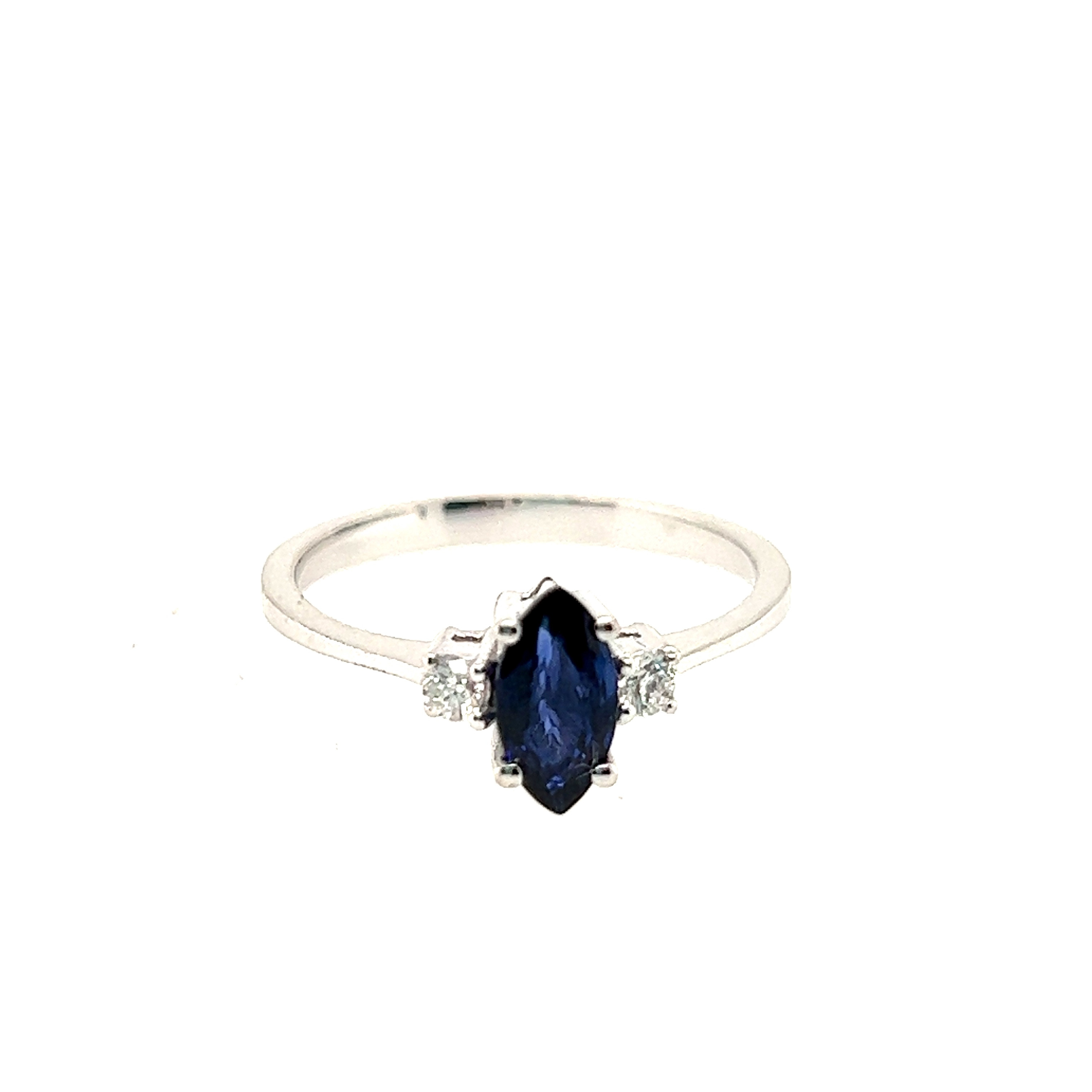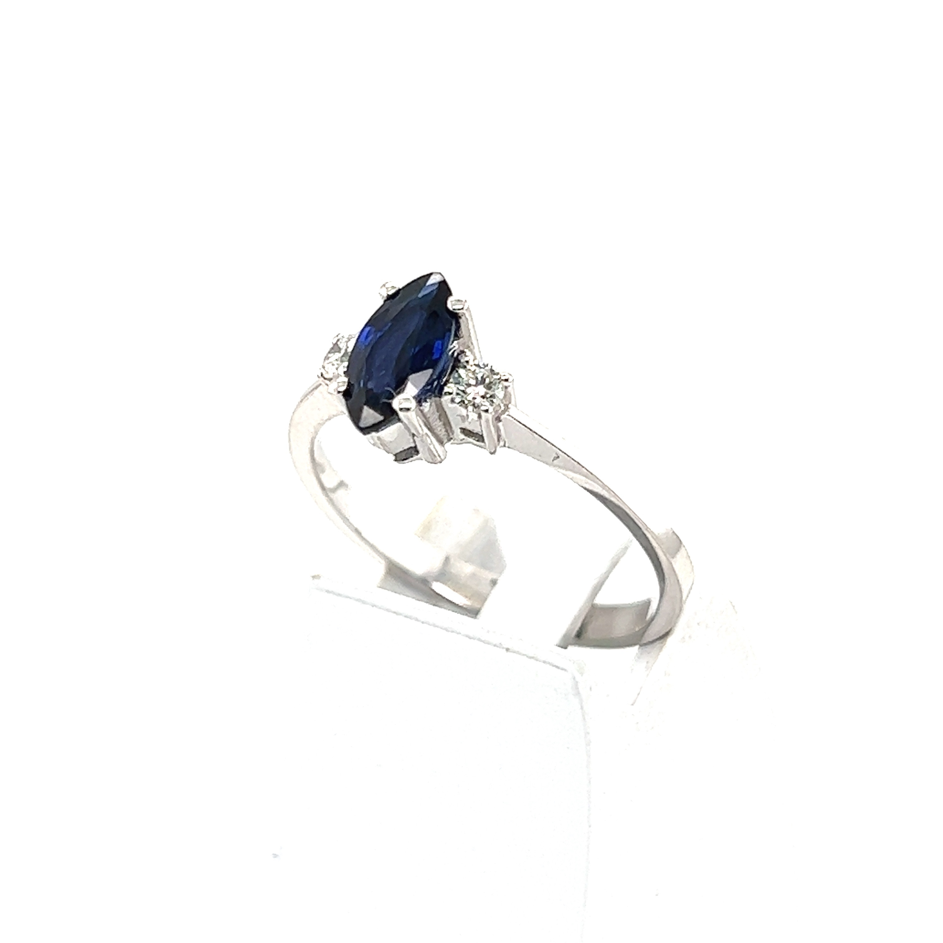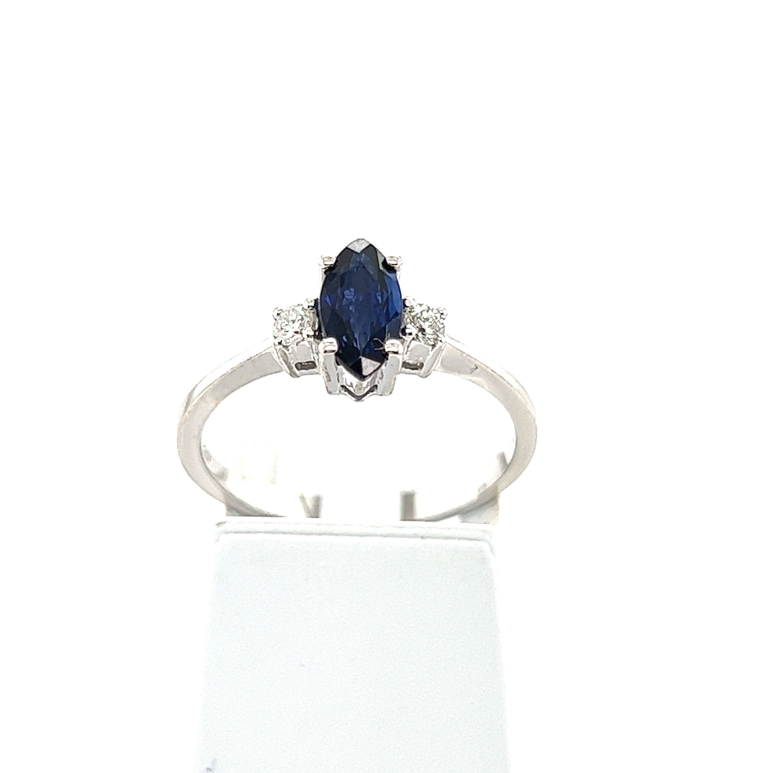 Пръстен от “Jacklin hugasian” бяло злато с диаманти и сапфир.