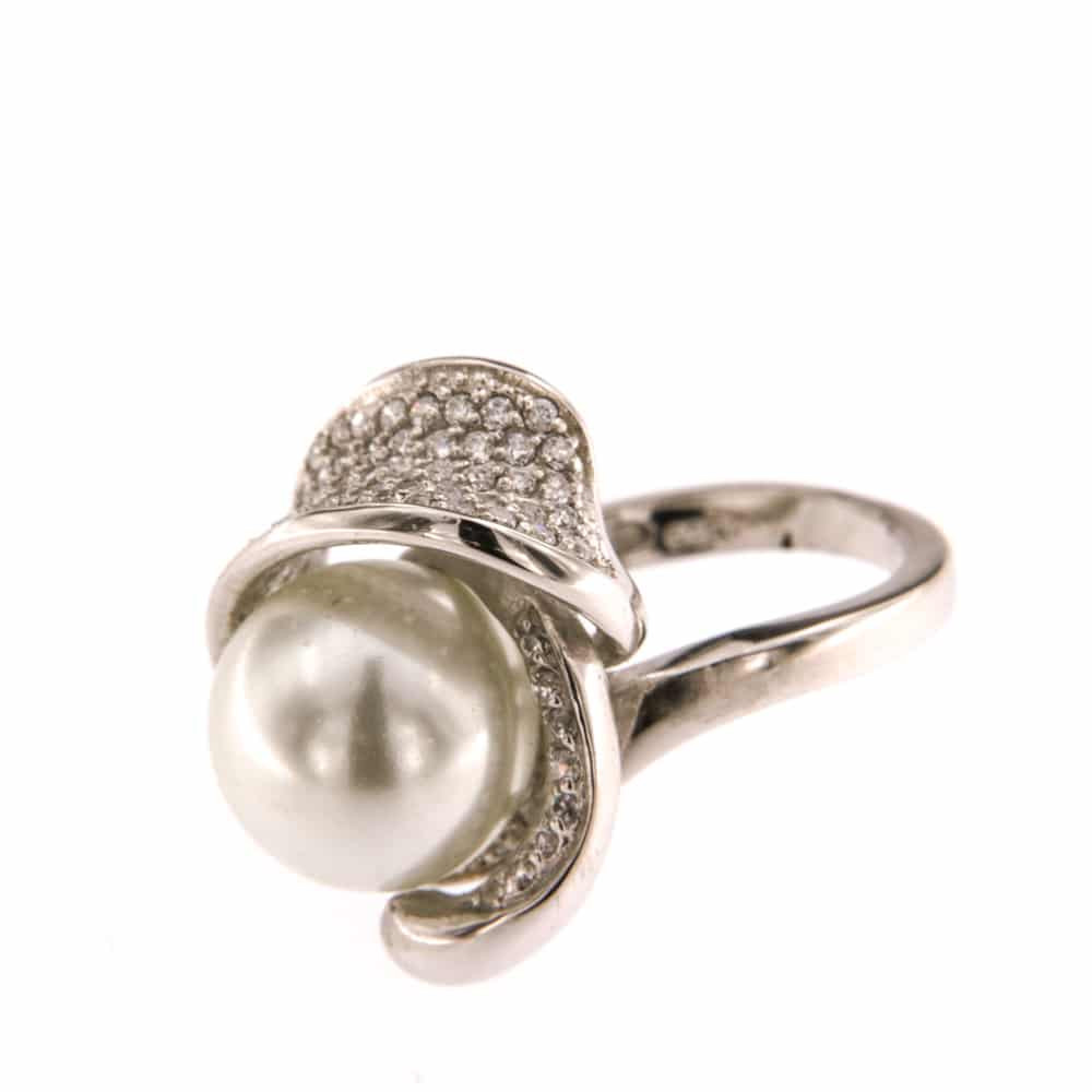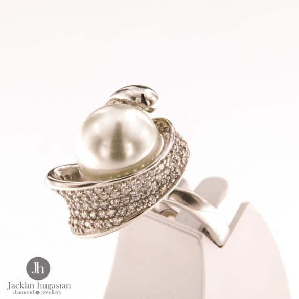 Пръстен от "Jacklin hugasian " в сребро с цирконии и култивирана бяла перла.