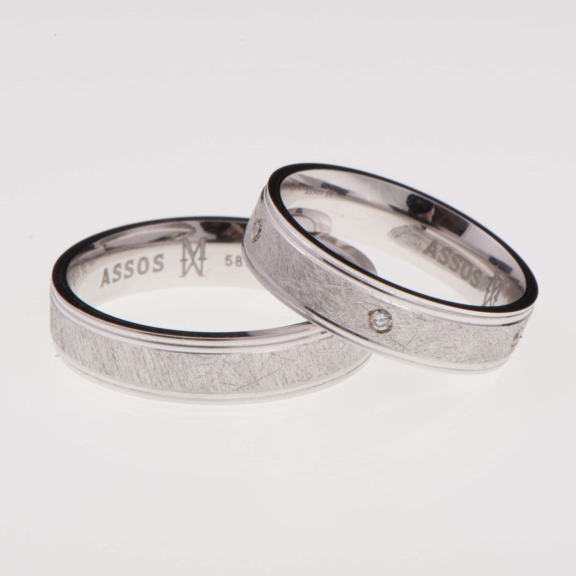 Венчални халки от " Jacklin hugasian " бяло злато сатениран мат и гланц с цирконии.