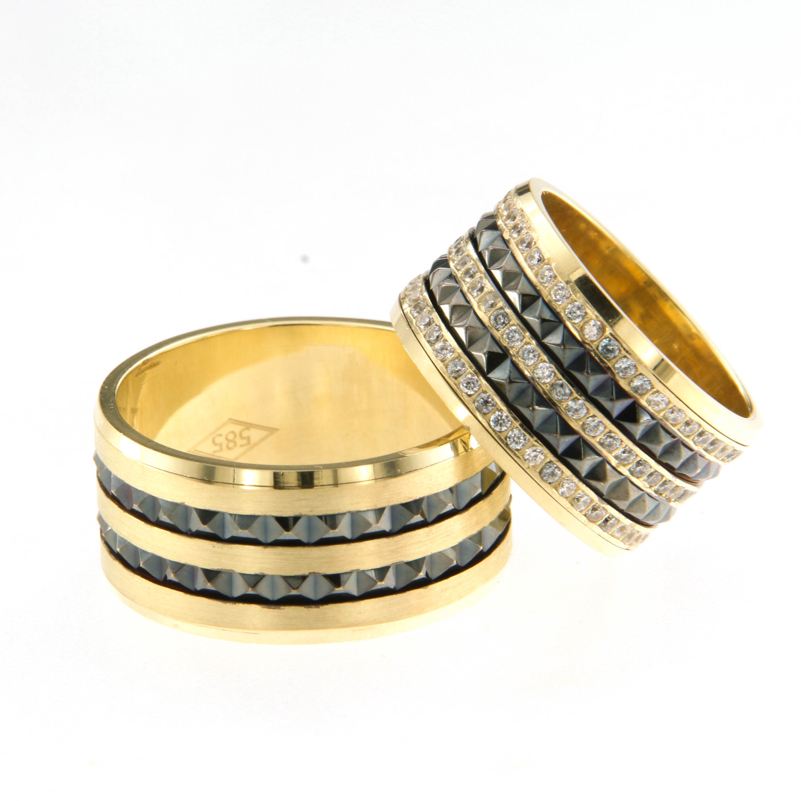 Венчални халки от “Jacklin hugasian” в жълто и черно злато със циркони. Фабрична изработка. Модел "BOUCHERON"