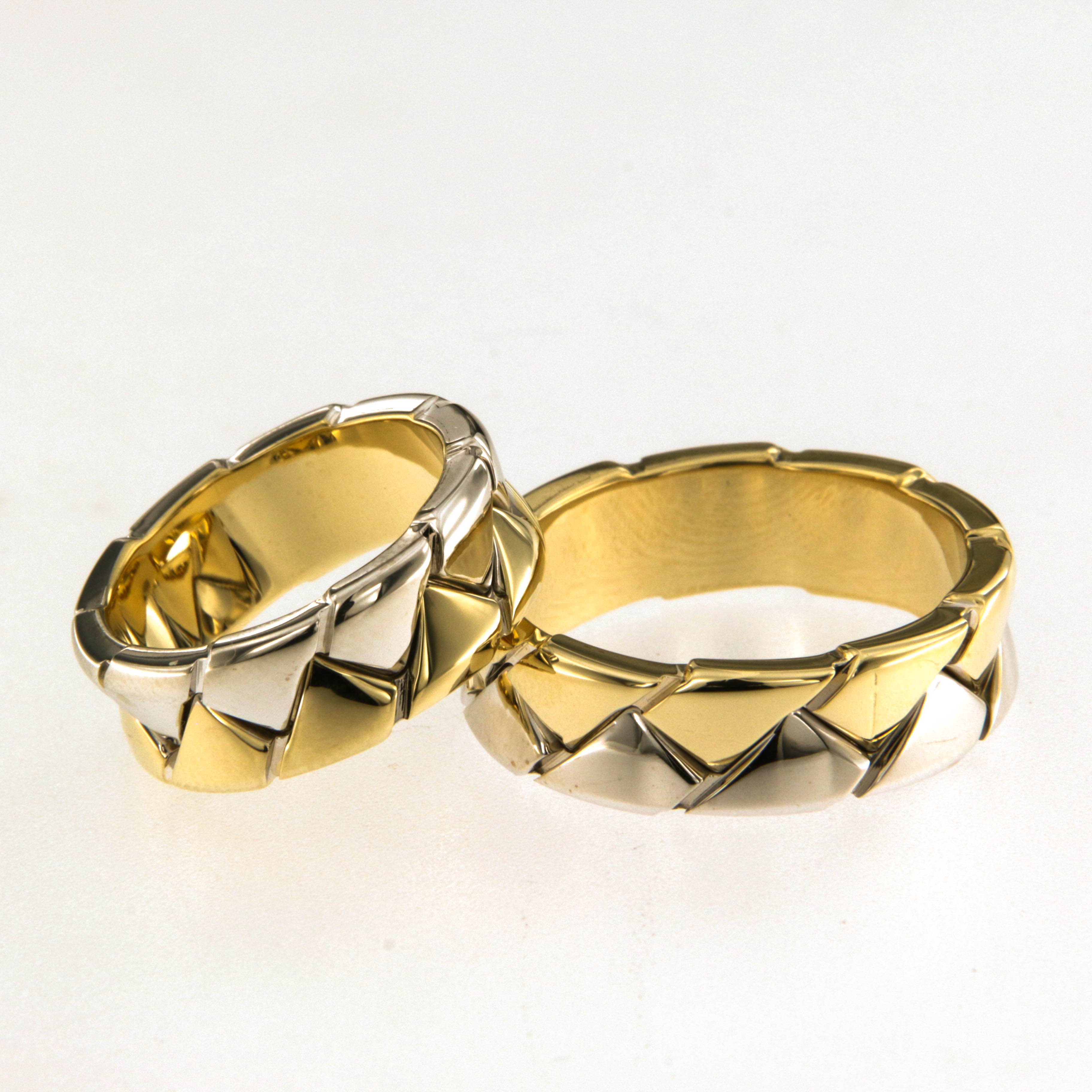 Венчални халки от "Jacklin hugasian" в бяло и жълто злато гланц.