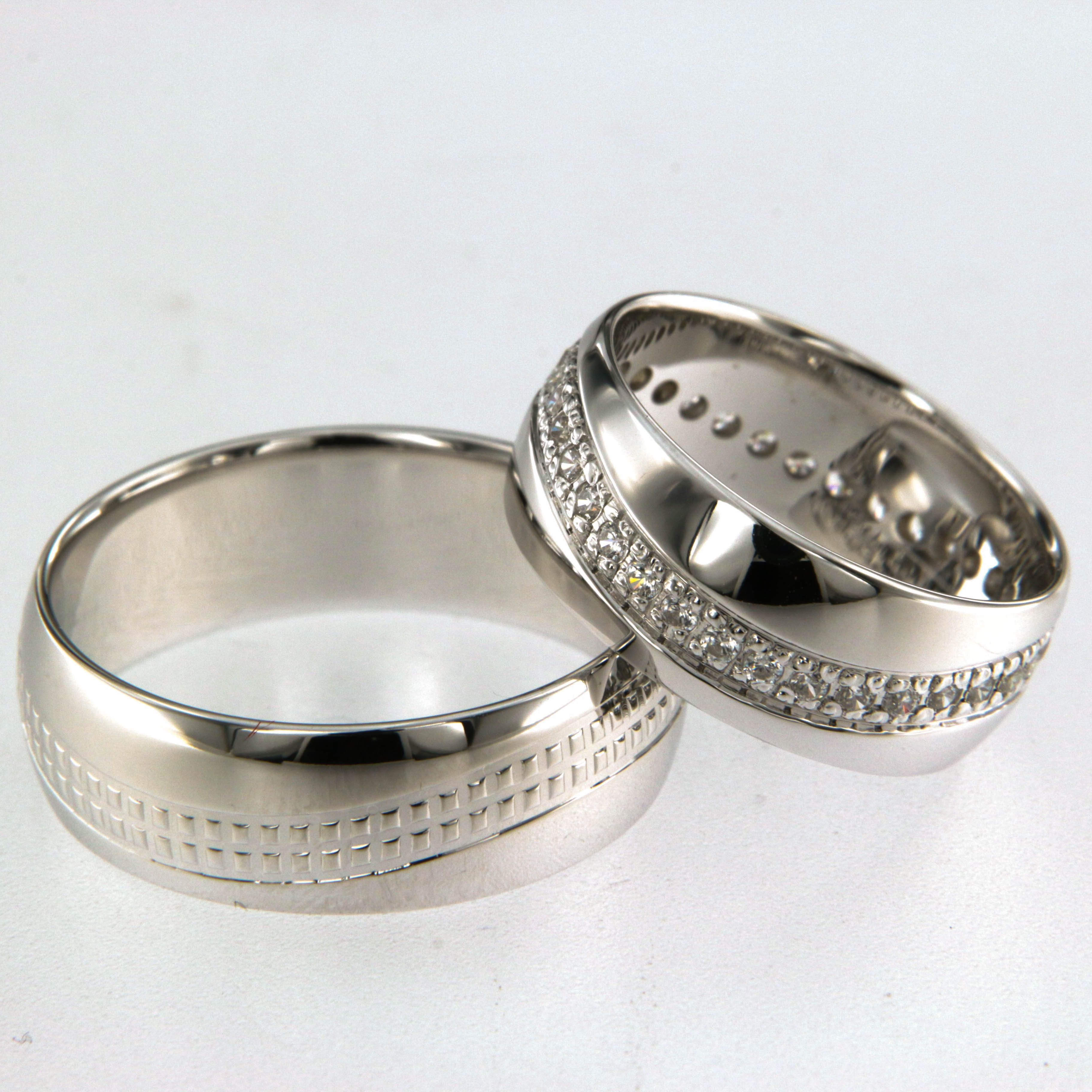 Венчални халки от "Jacklin hugasian" в бяло злато мат и гланц с цирконии. Фабрична изработка.