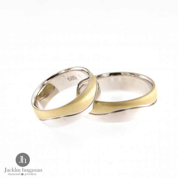 Венчални халки от "Jacklin hugasian " в жълто и бяло злато мат и гланц.