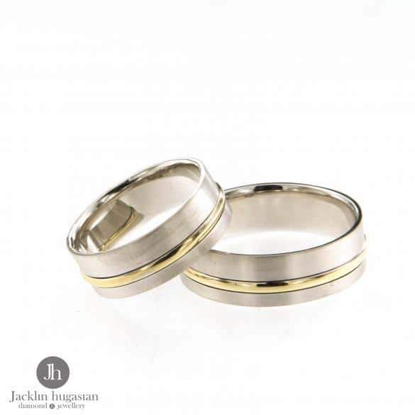 Венчални халки от "Jacklin hugasian " в жълто и бяло злато мат и гланц.