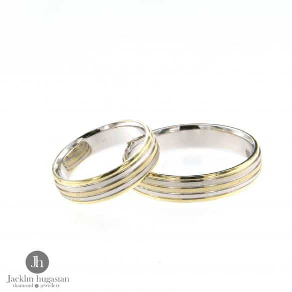 Венчални халки от "Jacklin hugasian " в жълто и бяло злато мат и гланц.