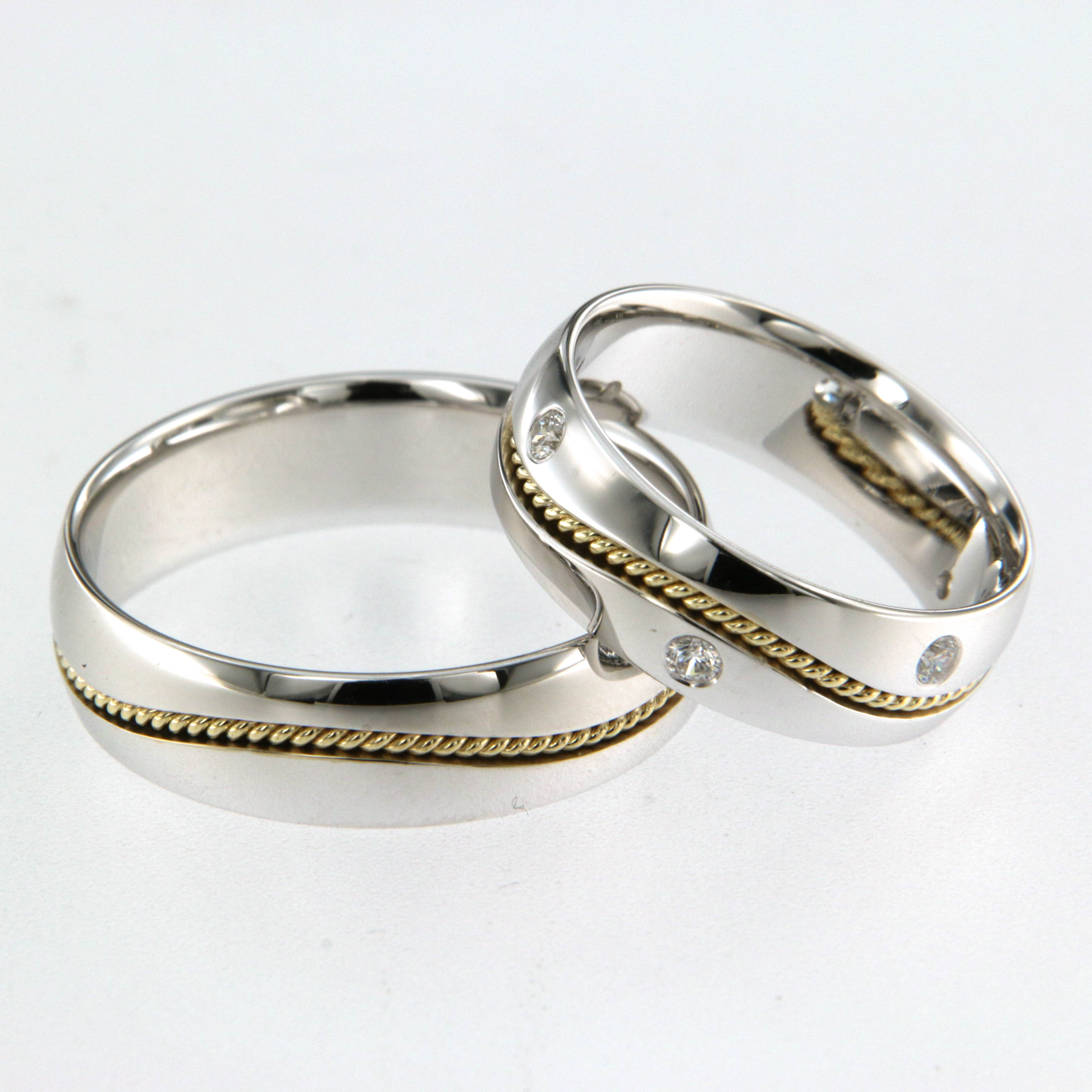 Венчални халки от "Jacklin hugasian" в жълто и бяло злато мат и гланц с циркони . Фабрична изработка.