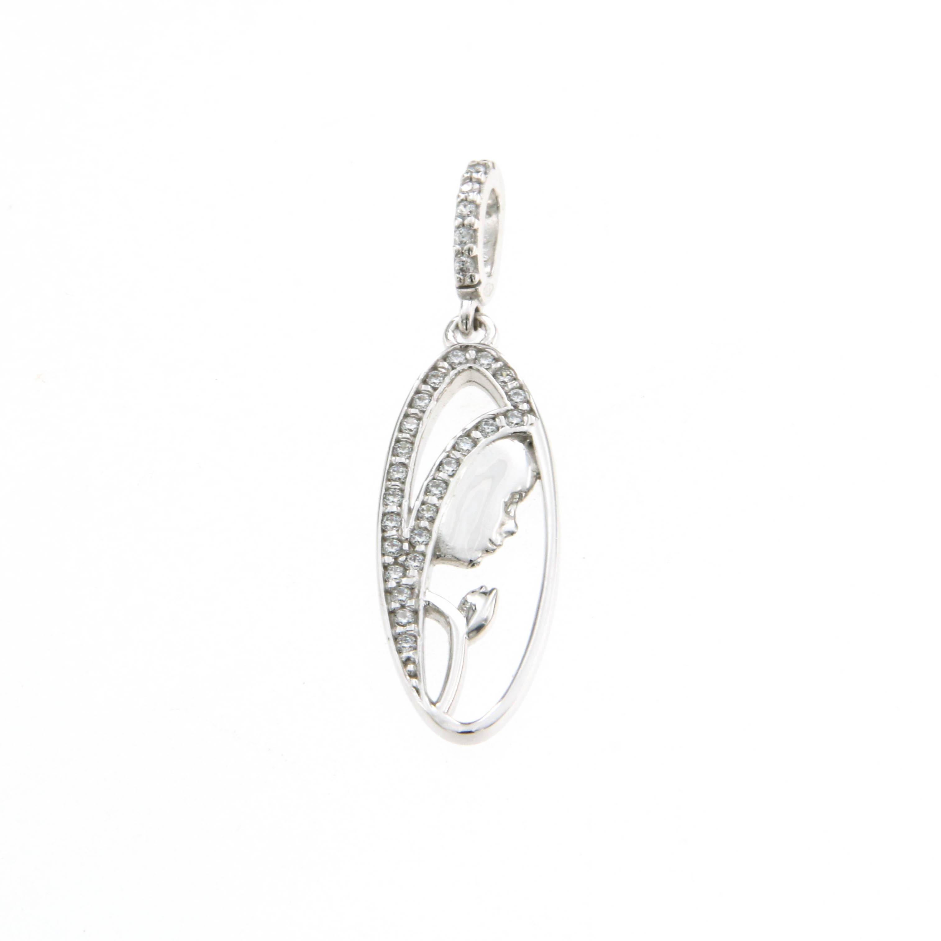 Висулка ”Богородица” от ”Jacklin hugasian” в бяло злато гланц с циркони. Дължина висулка 3 см., широчина 1 см.