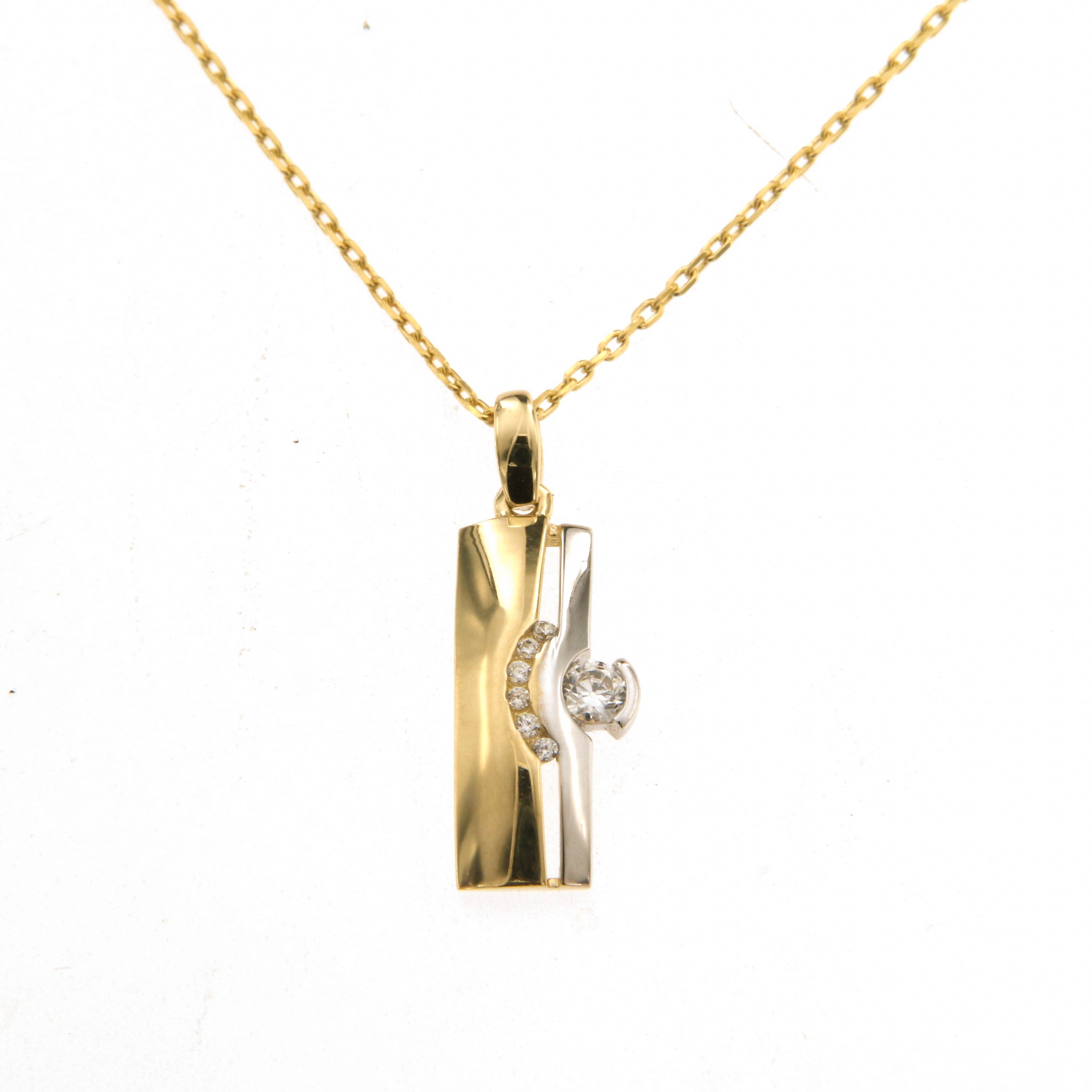 Висулка от " Jacklin hugasian " в жълто и бяло злато,гланц с цирконии.Дължина висулка 2.1 см. ,широчина 0.7 см.