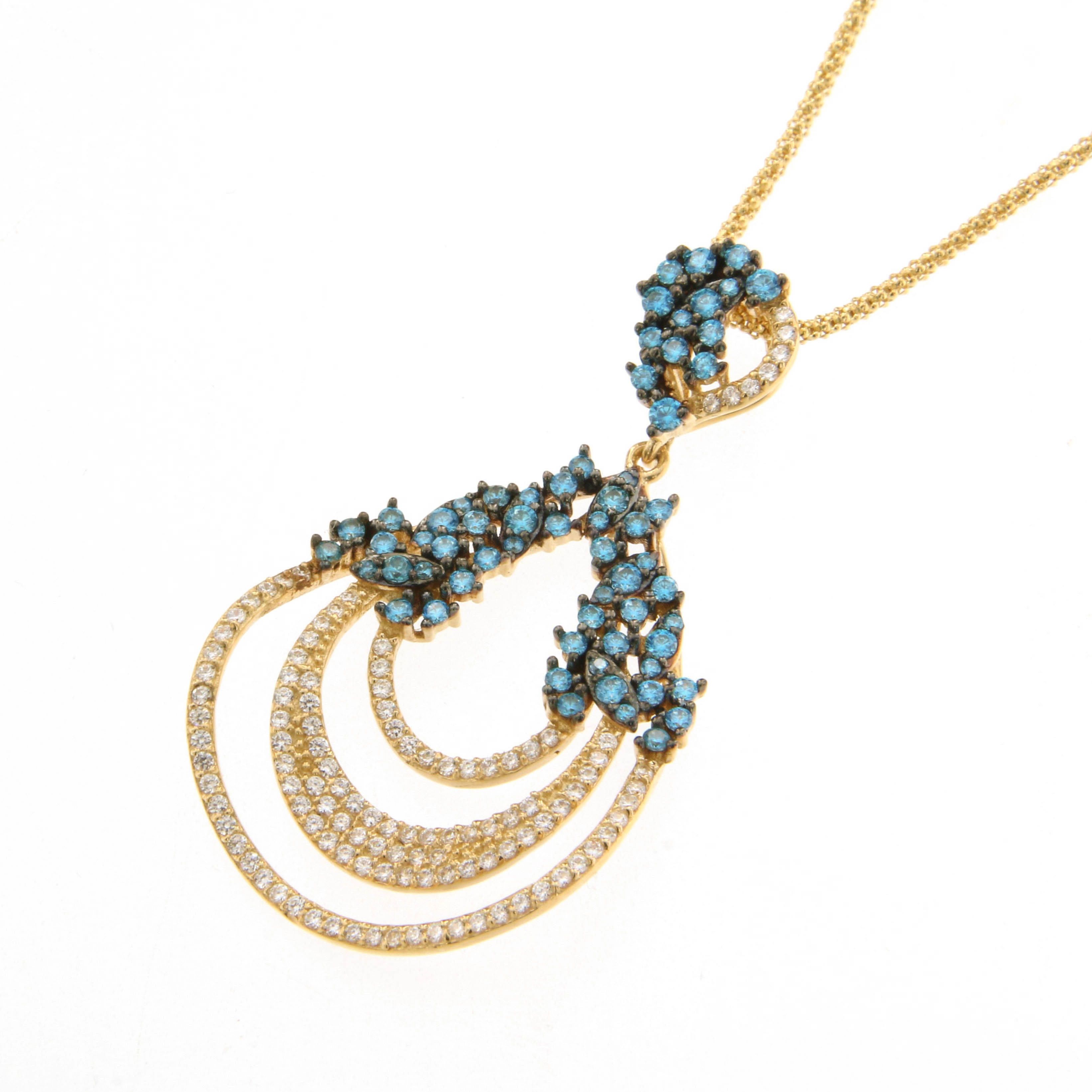 Висулка от “Jacklin hugasian” в жълто злато със син топаз и цирконии.