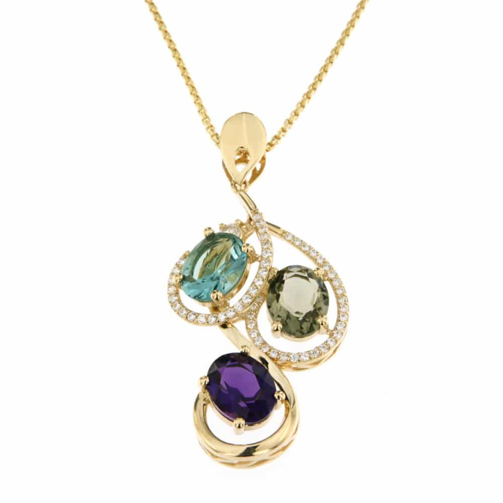 Висулка от " Jacklin hugasian " жълто злато със син топаз,перидот,аметист и цирконии.